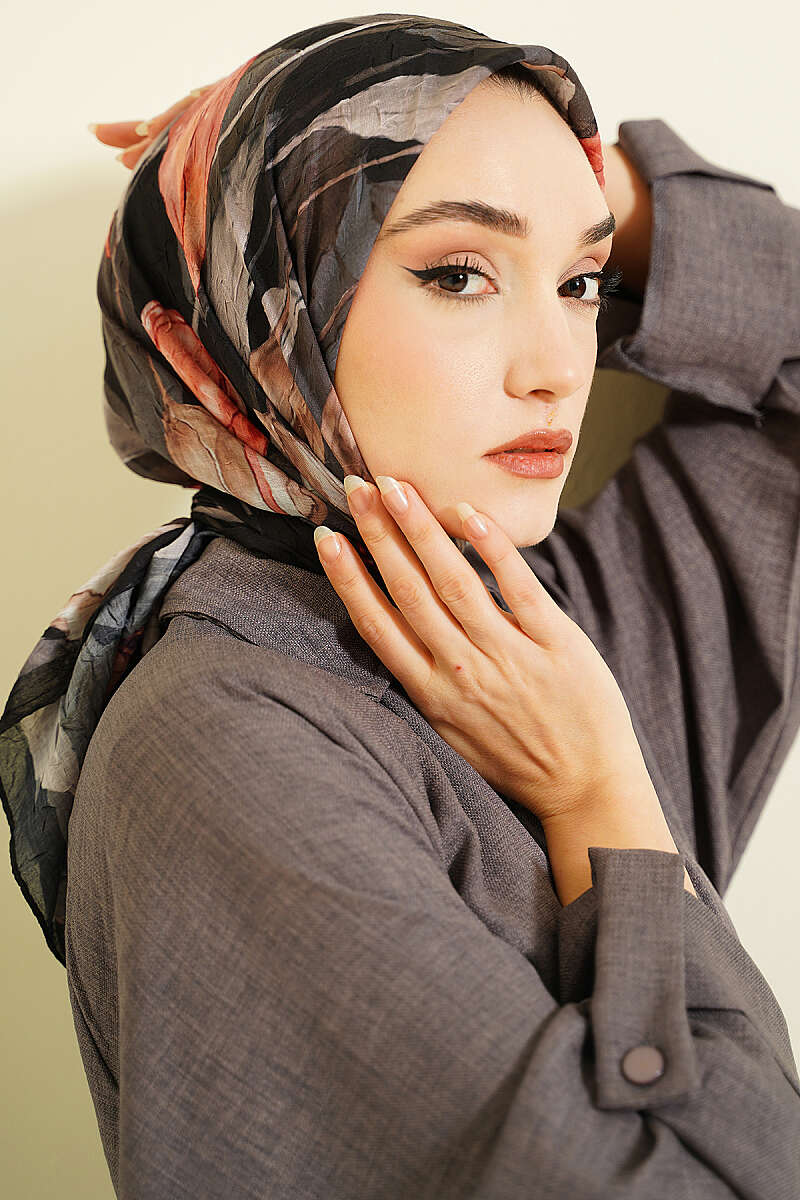 Lale Desen Bambu Kraş Eşarp Antrasit