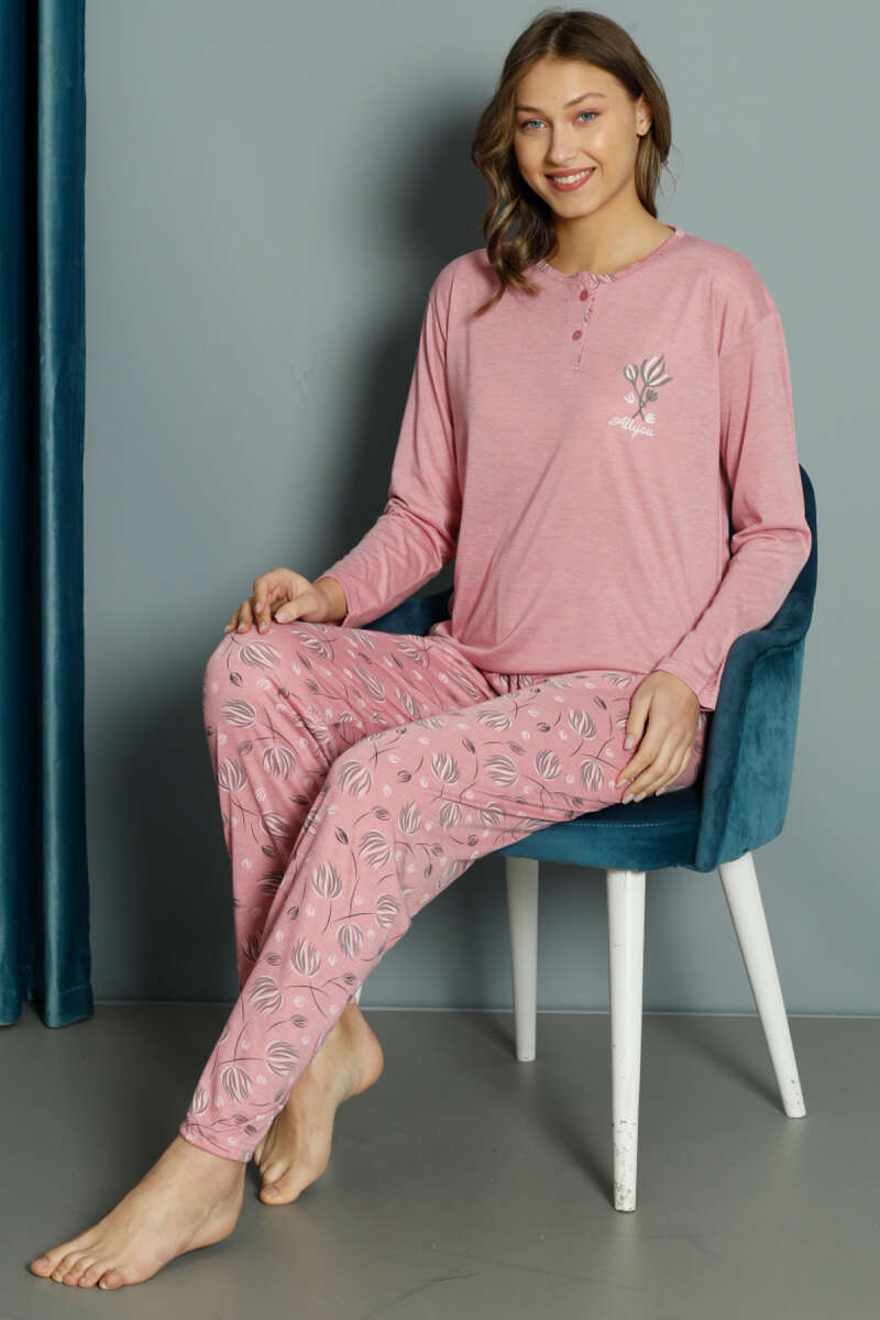Lale Desen Viskon Pijama Takımı Pers Gülü
