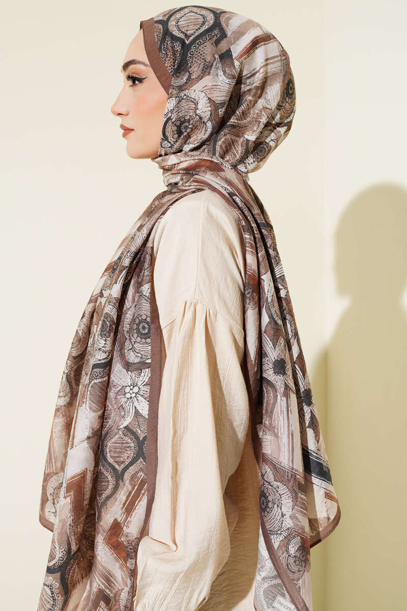 Geleneksel lale motiflerinin modern bir sanat anlayışıyla yeniden yorumlandığı bu modal şal, stilinize zarif ve kültürel bir derinlik katıyor. Modal kumaşın sunduğu ipeksi doku ve nefes alan yapı, gün boyu hafiflik ve konforlu bir kullanım deneyimi vaat ediyor. Kolay şekil alan ve kayma yapmayan tok duruşu sayesinde formunu uzun süre korurken, sanatsal desen detaylarıyla hem günlük hem de şık kombinlerinizin vazgeçilmez bir parçası oluyor.