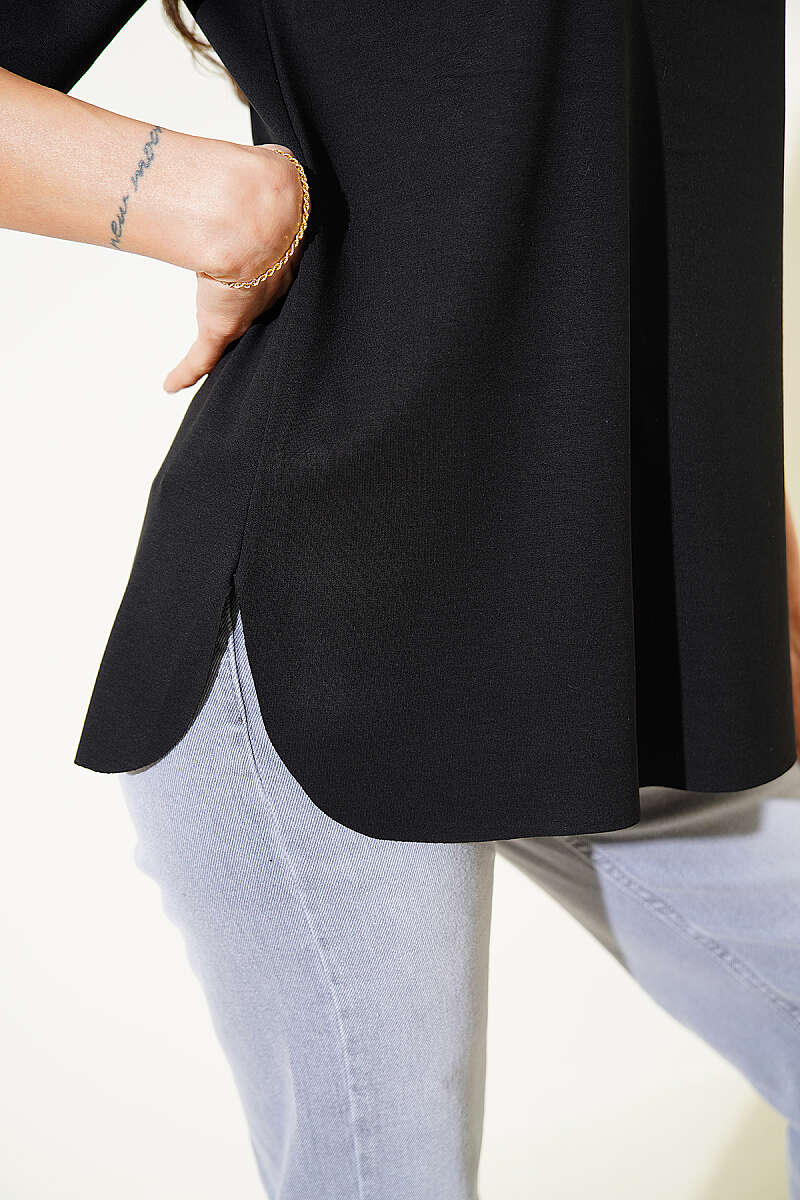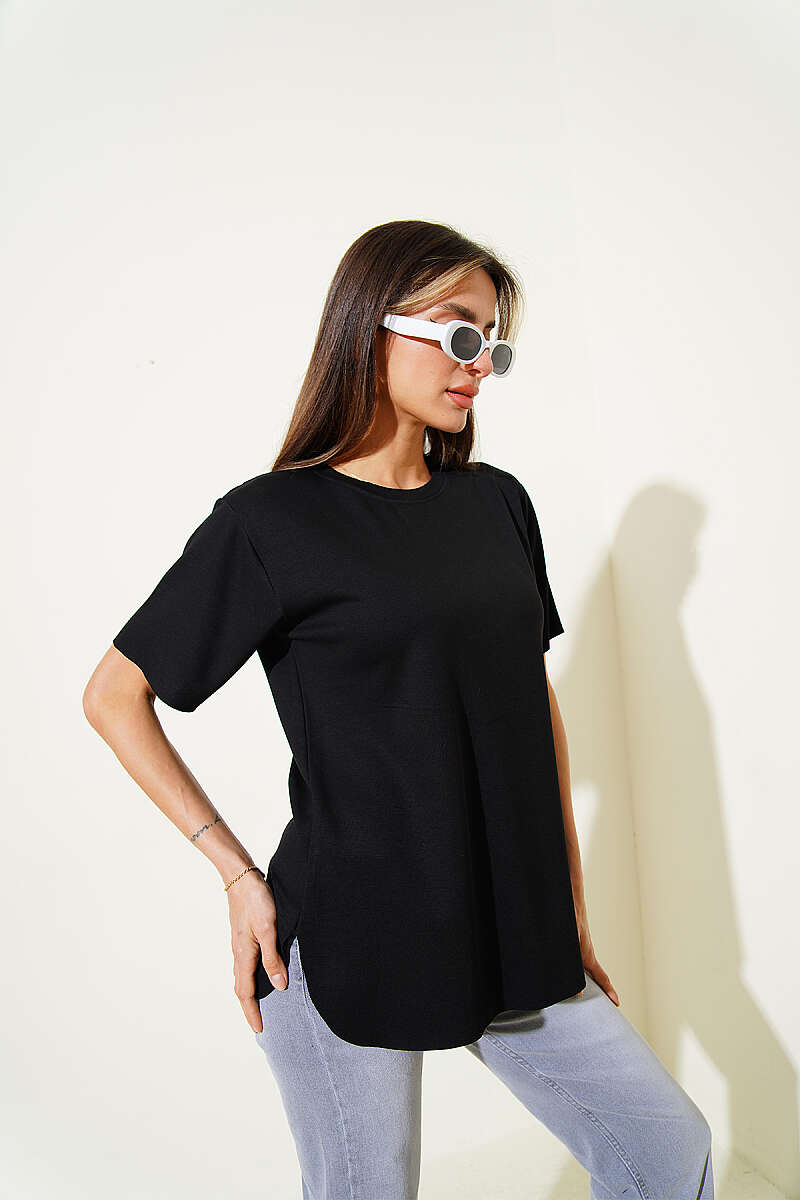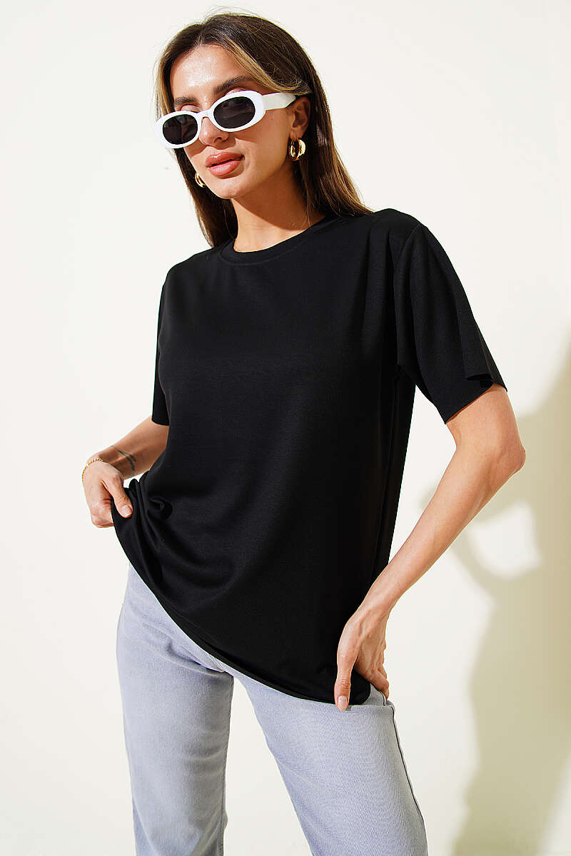 Lazer Kesimli Basic T-shirt Siyah