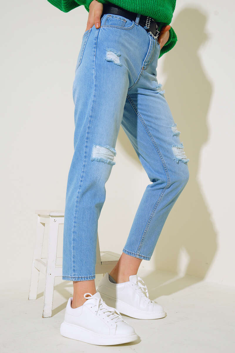 Yeni sezon kot pantolonumuz sportif ve şık bir görünüm sunmaktadır. Beli düğmeli ve fermuarlı olan pantolonumuz lazer sökük modeldir. Yanda İki arkada iki olmak üzere dört ceplidir.