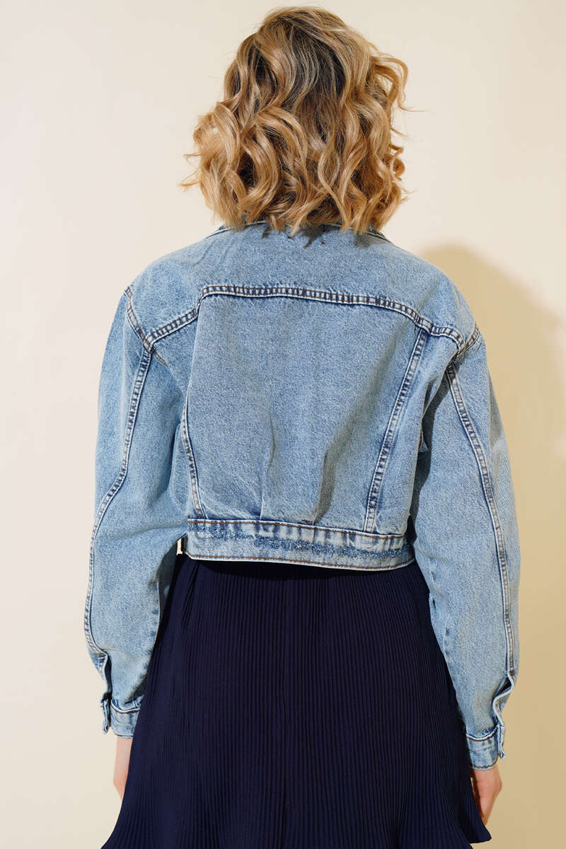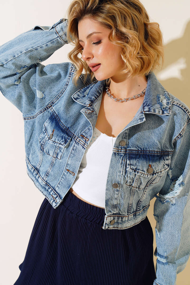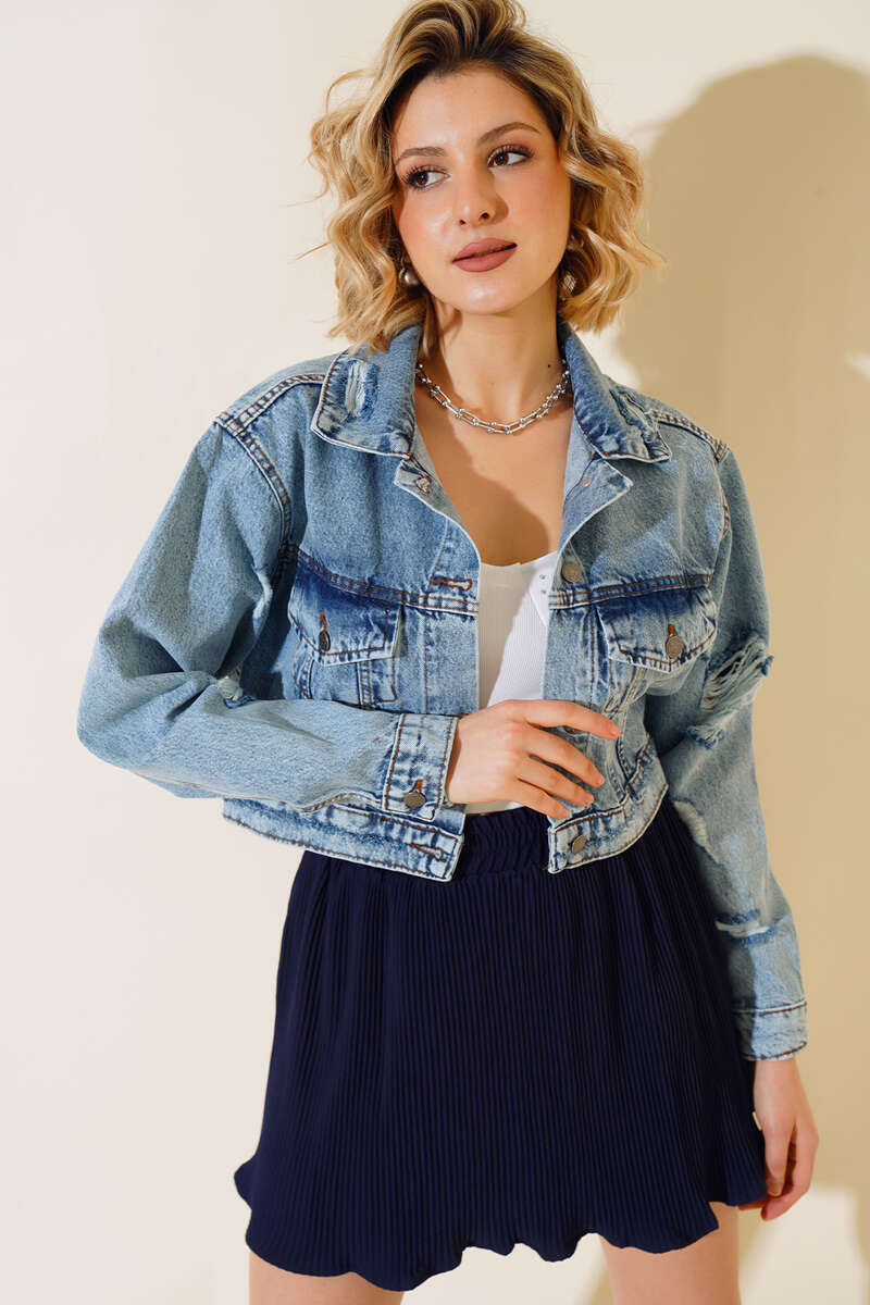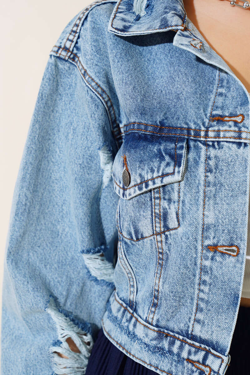 Yeni sezon ceket modelimiz sizlerle beraber. Lazerli kot ceket modelimizin iki adet göğüs cebi bulunmaktadır. Yırtık detayları ile hareketlilik kazanmıştır. Önü ve kol bilekleri düğmelidir.