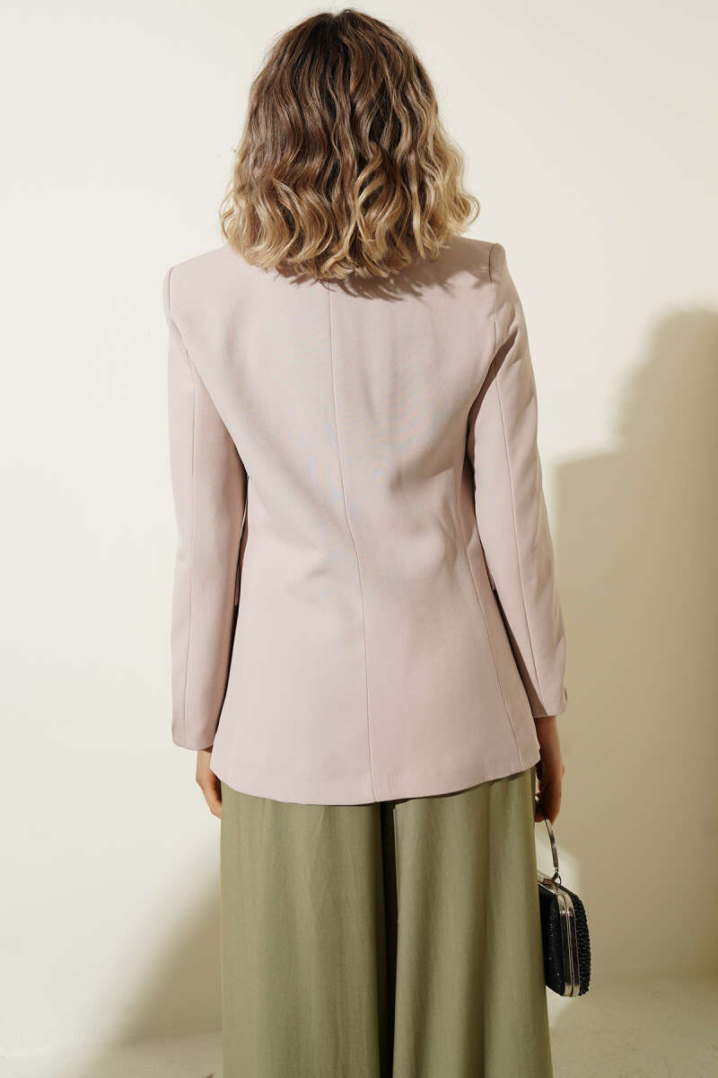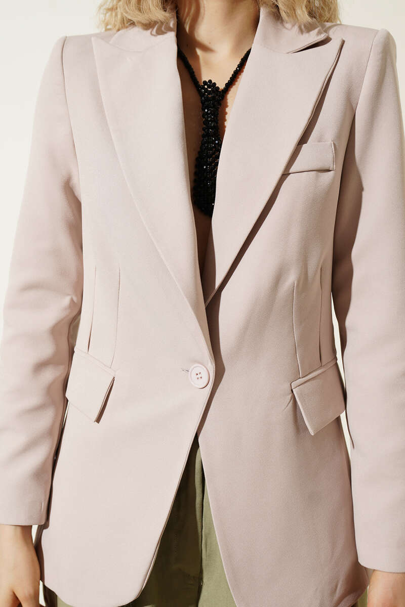 Leopar Astarlı Tek Düğme Blazer Ceket Bej