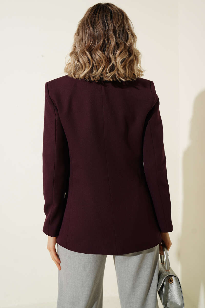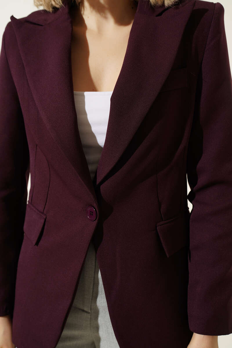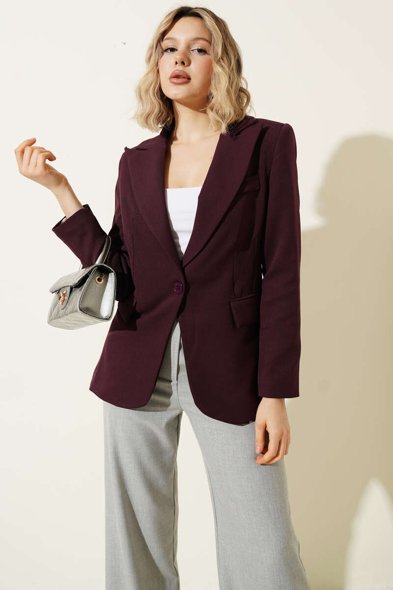 Leopar Astarlı Tek Düğme Blazer Ceket Mürdüm