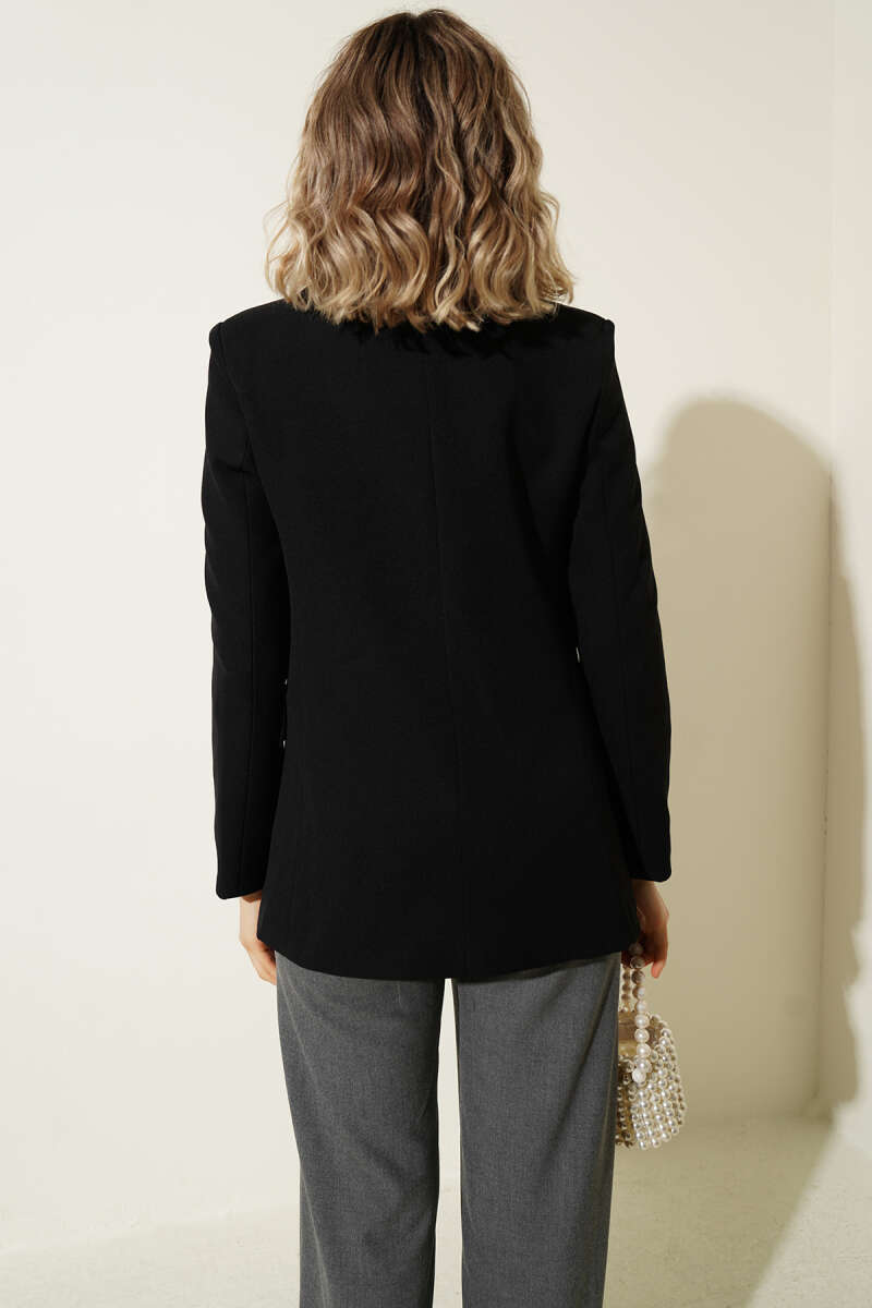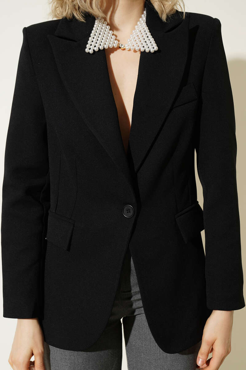 Leopar Astarlı Tek Düğme Blazer Ceket Siyah