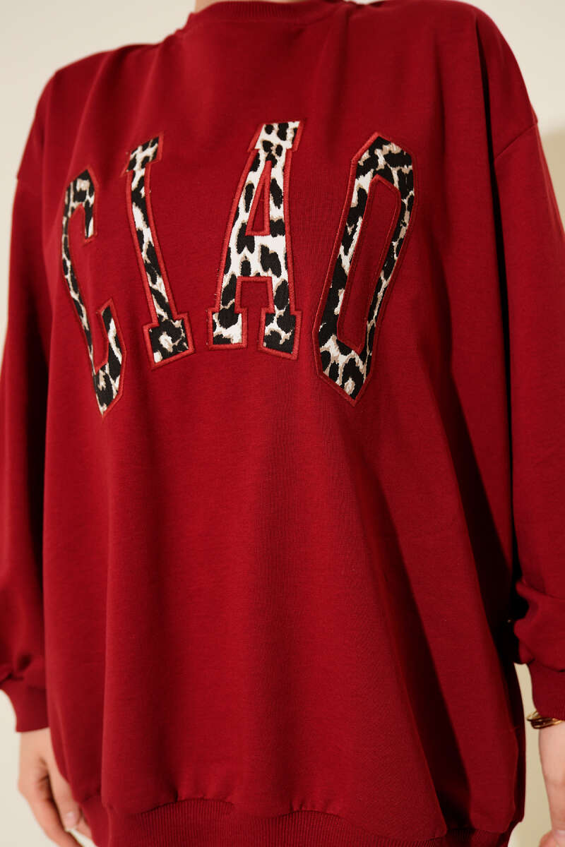 Yatay Çizgi Detaylı Triko Tunik Bordo