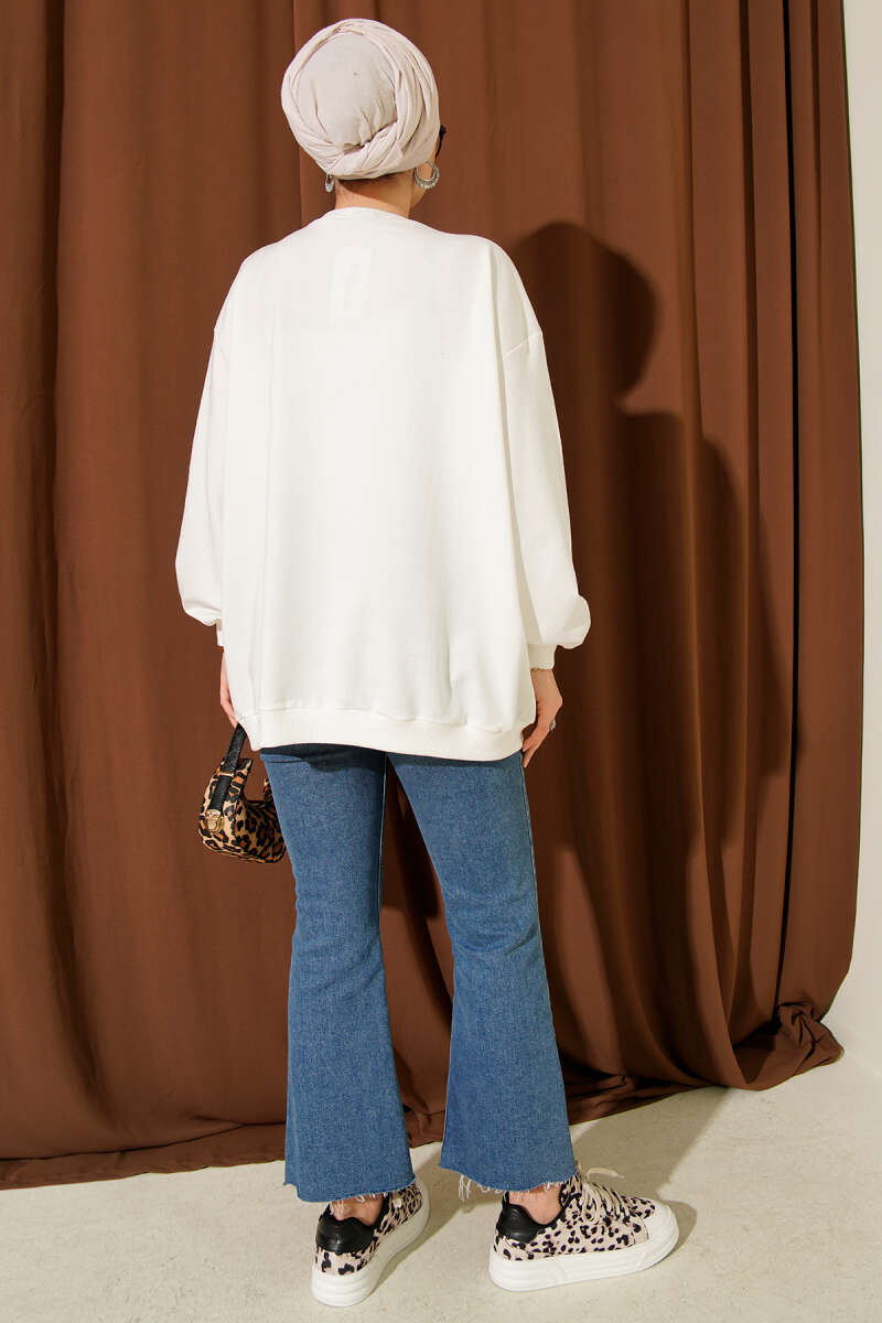 Kürk Cepli Scuba Tunik Beyaz