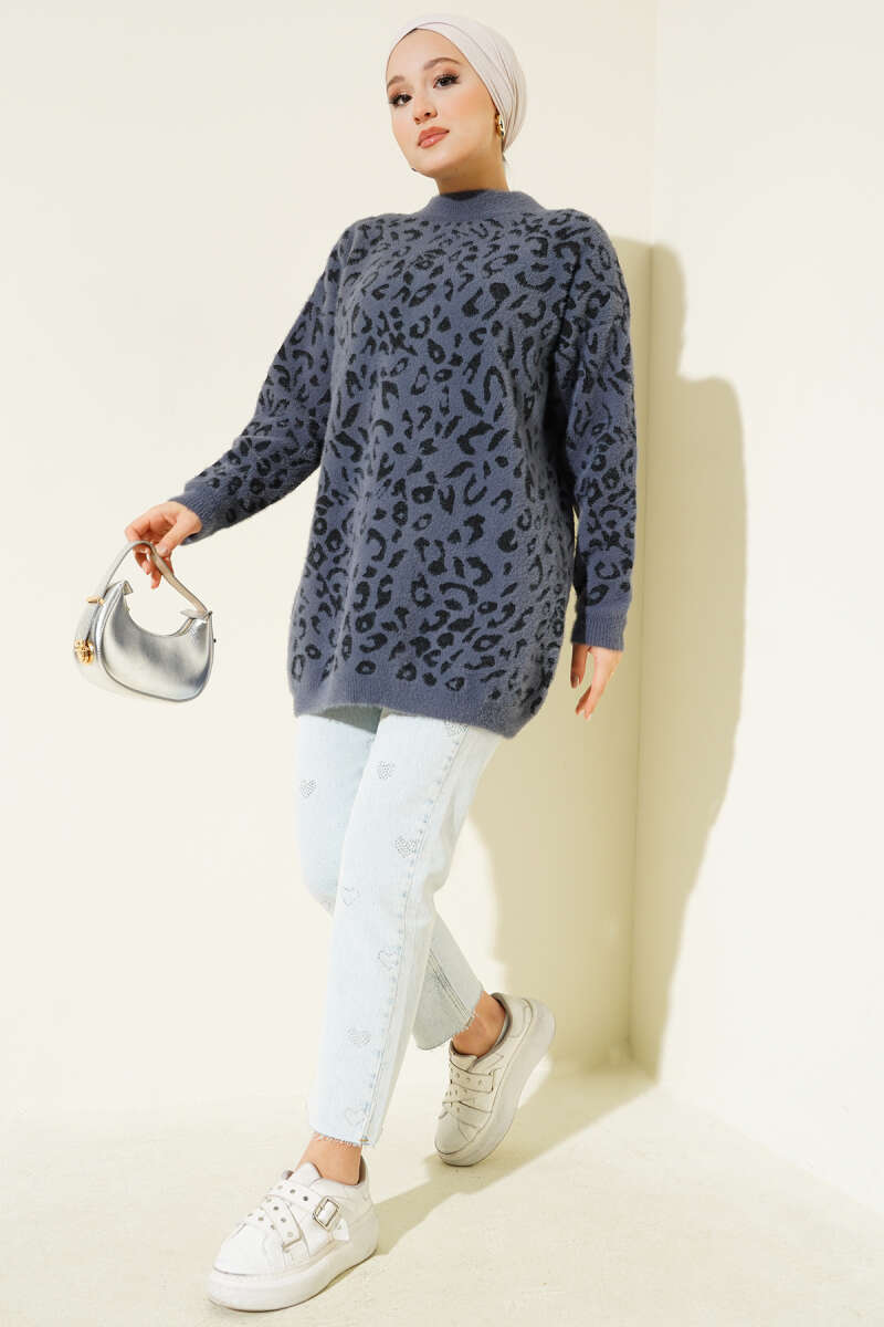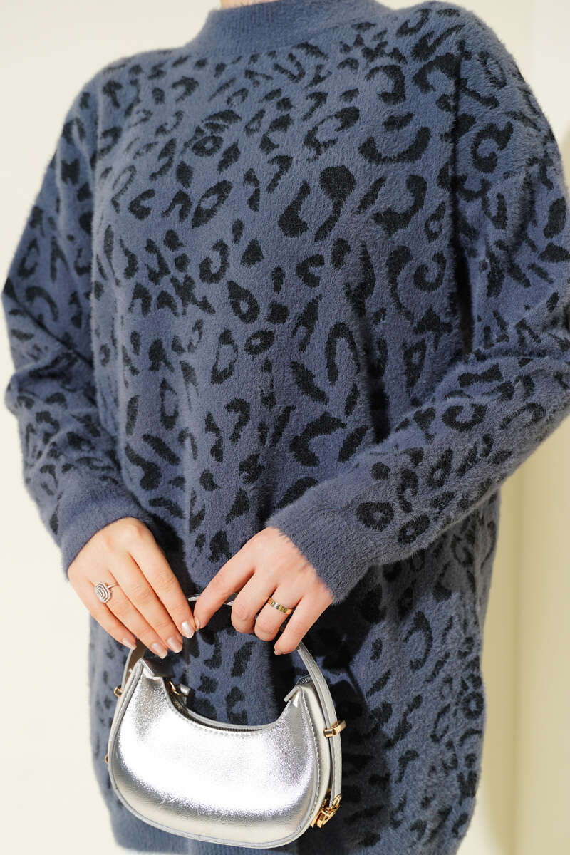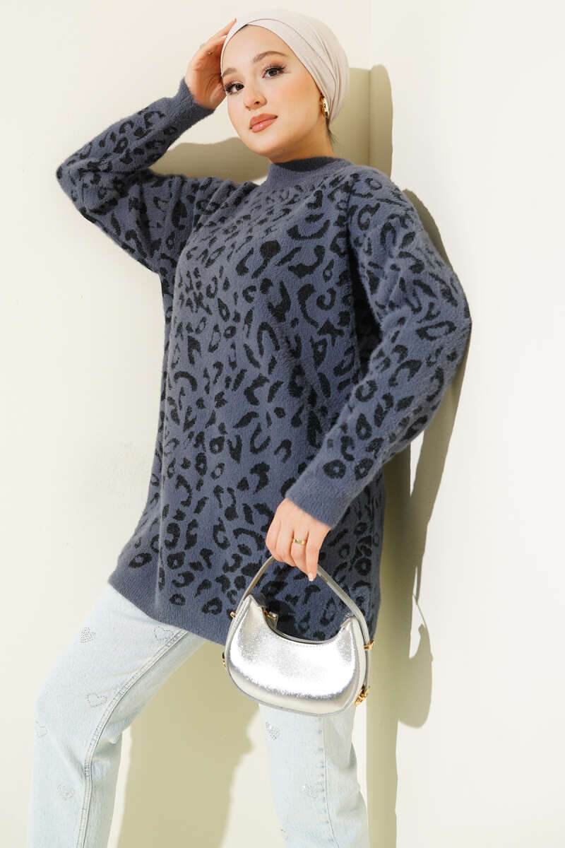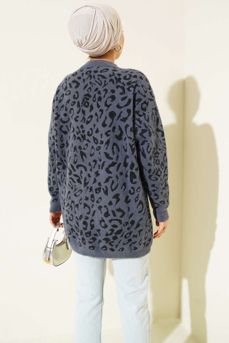 Leopar Desen Detaylı Sakallı Kazak Füme