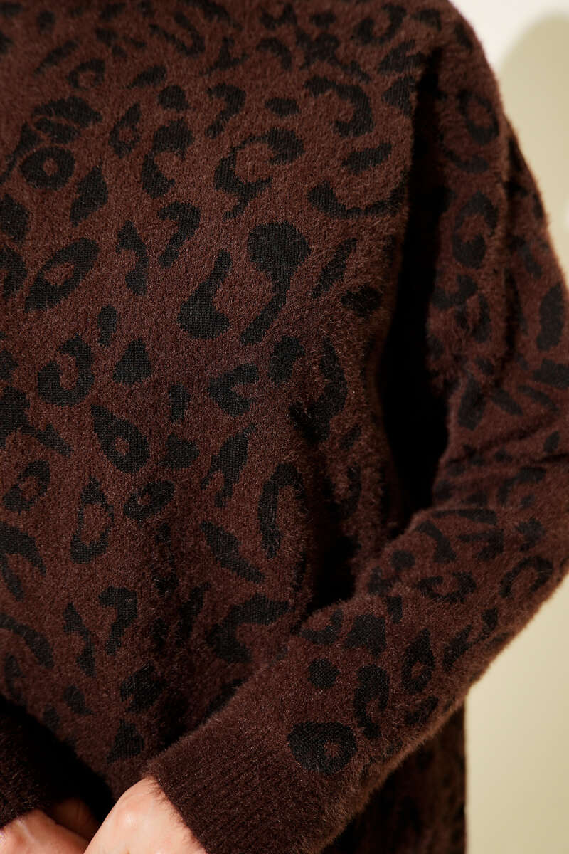 Leopar Desen Detaylı Sakallı Kazak Bej