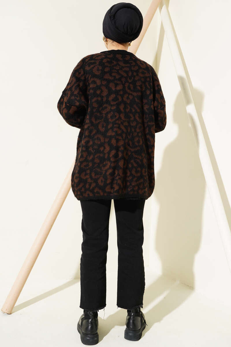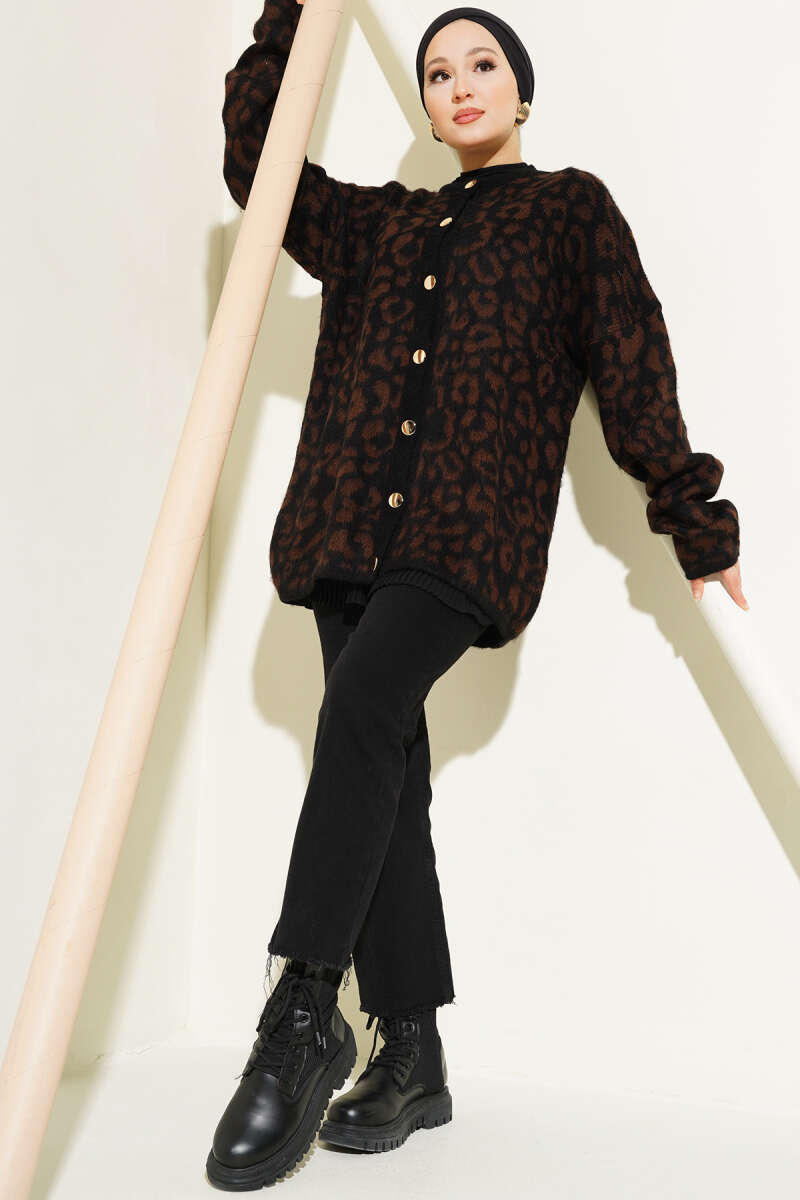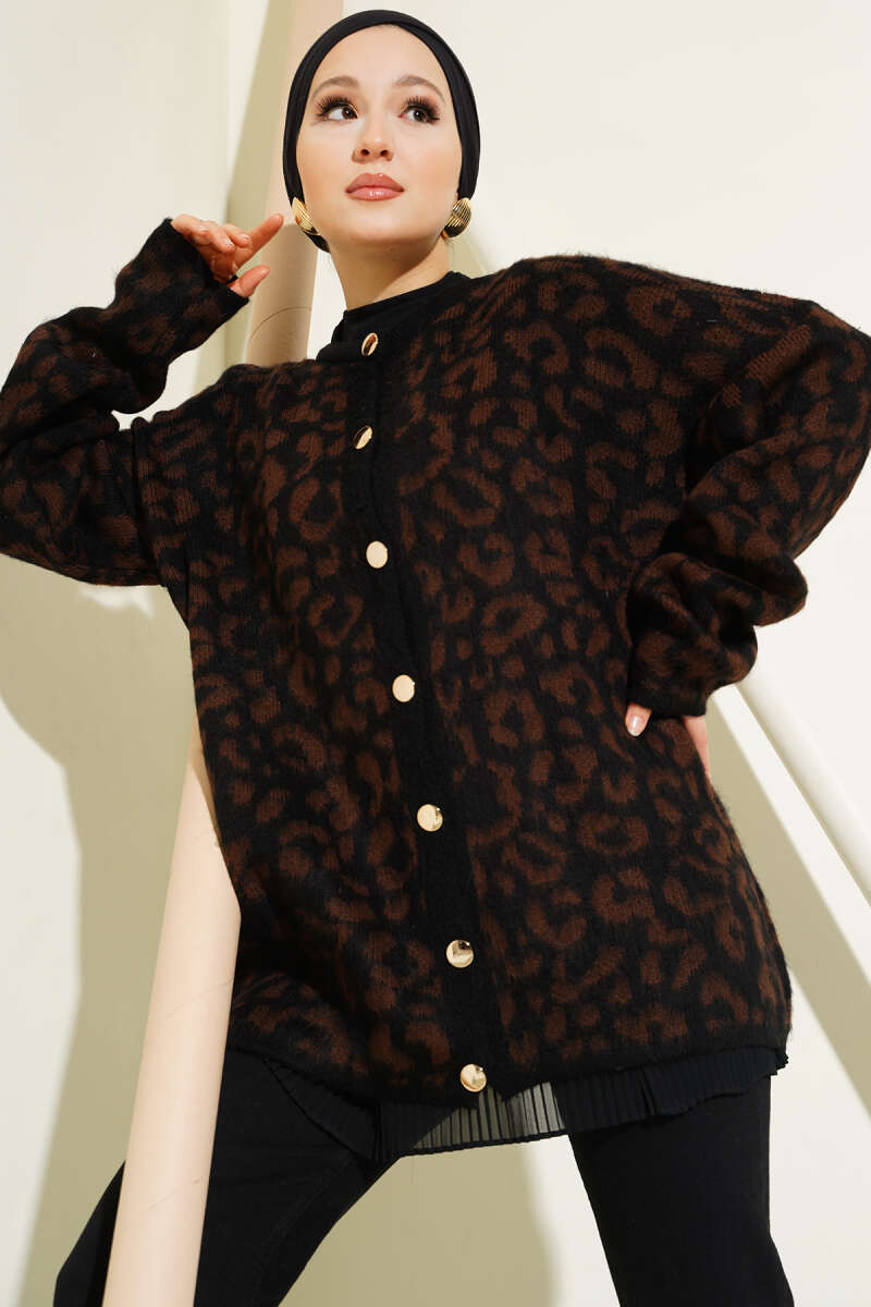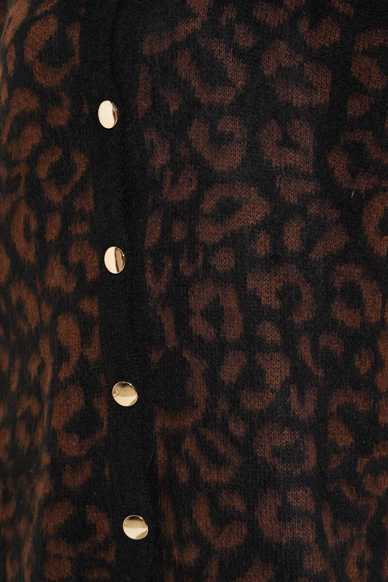Yakası Kürklü Triko Leopar Hırka