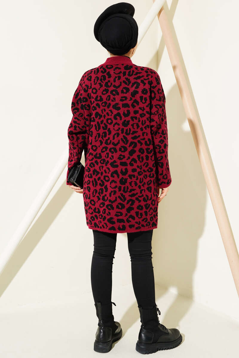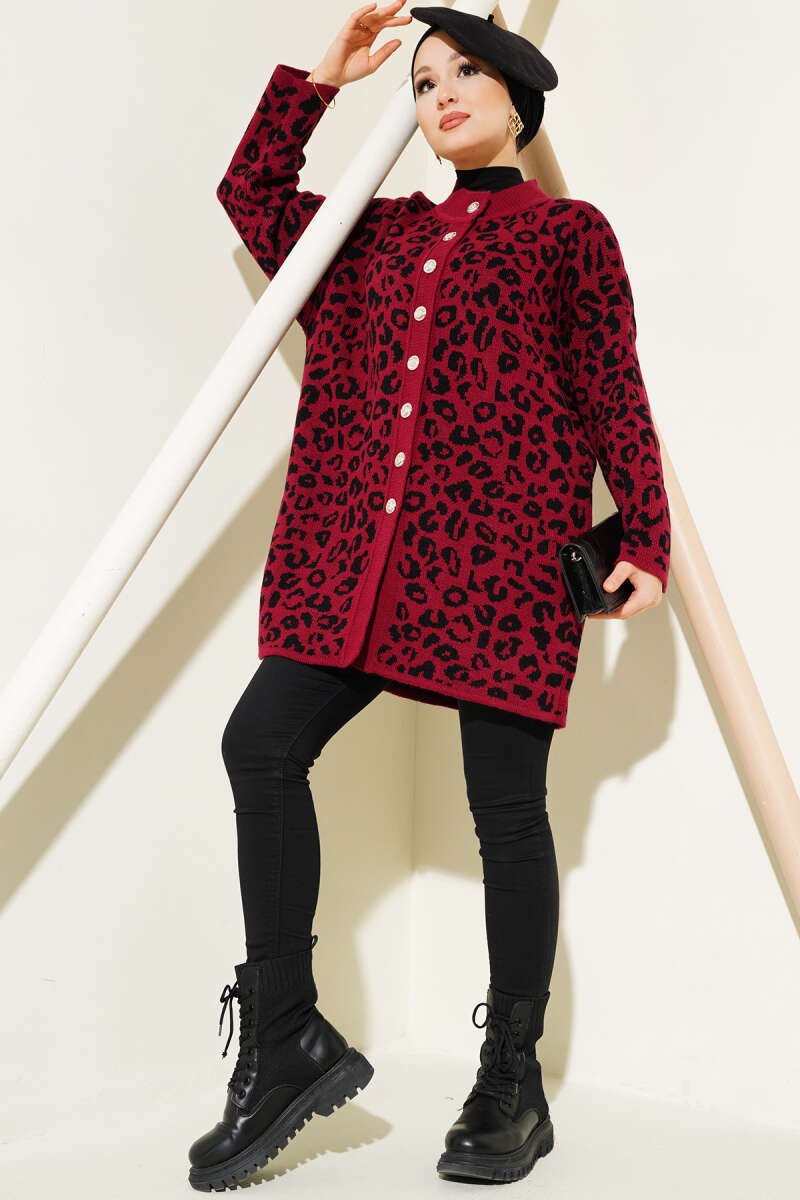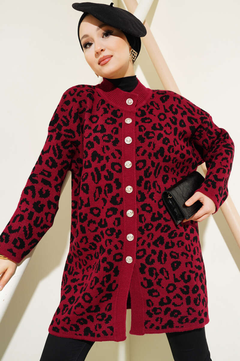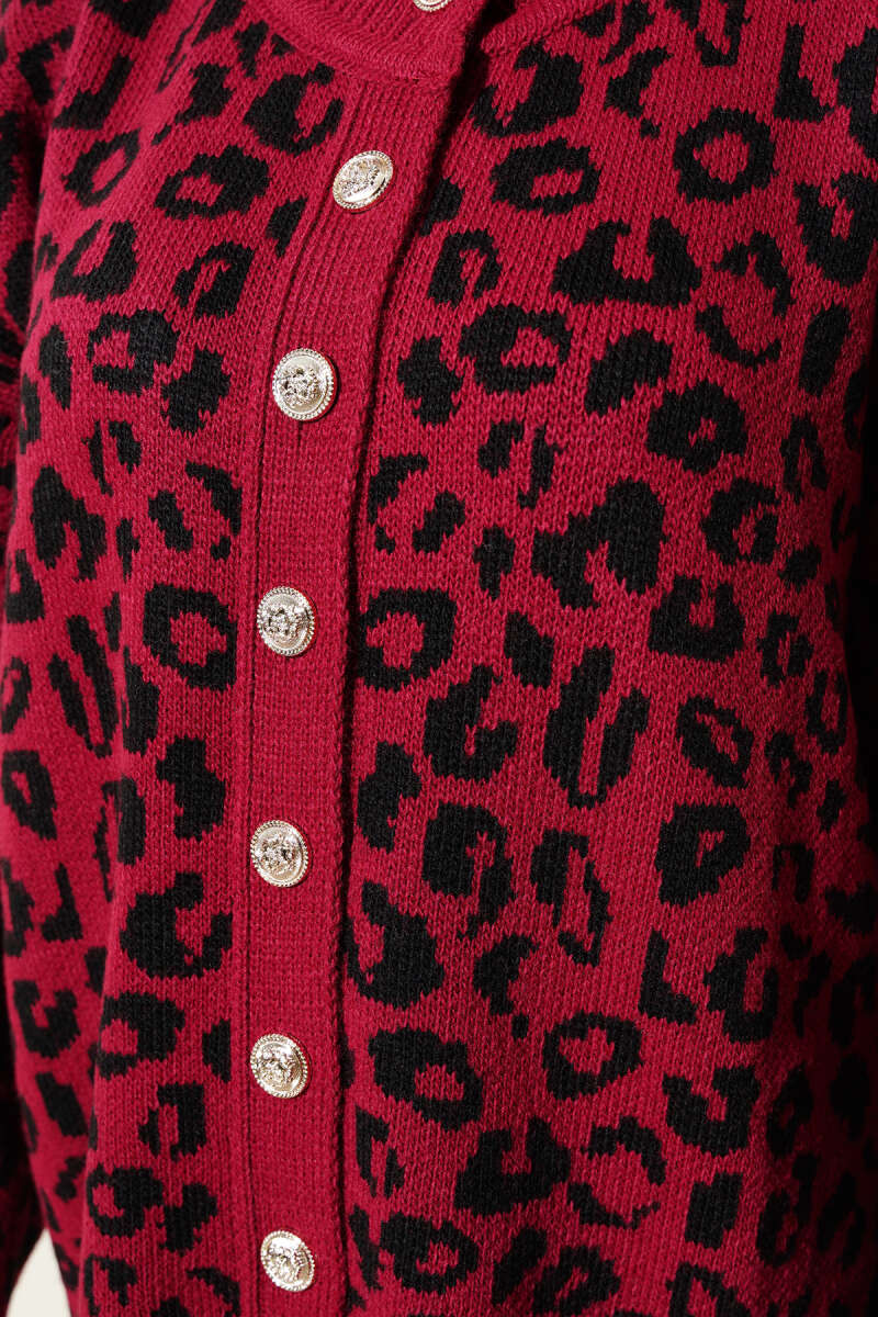 Zikzak Desenli Gold Düğmeli Triko Hırka Bordo