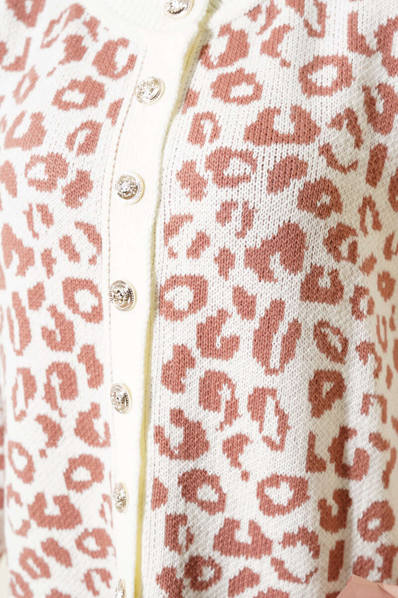 Zikzak Desenli Gold Düğmeli Triko Hırka Kahve