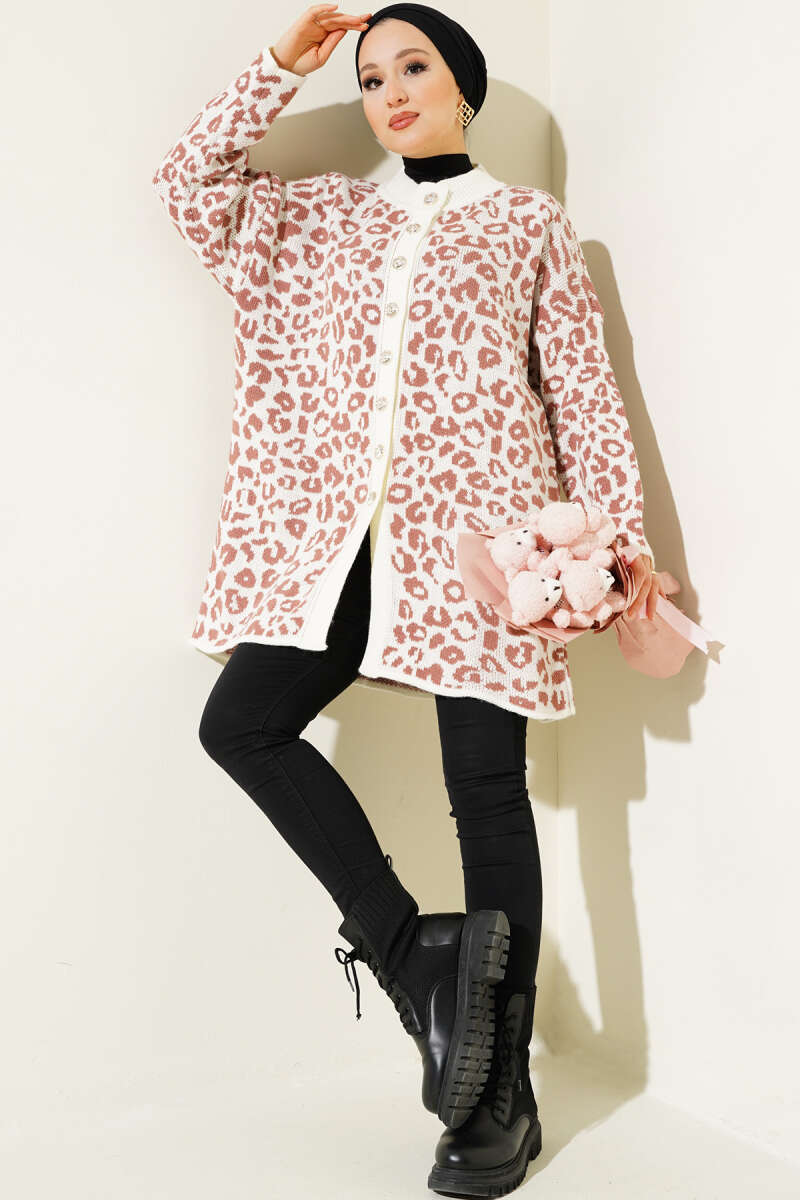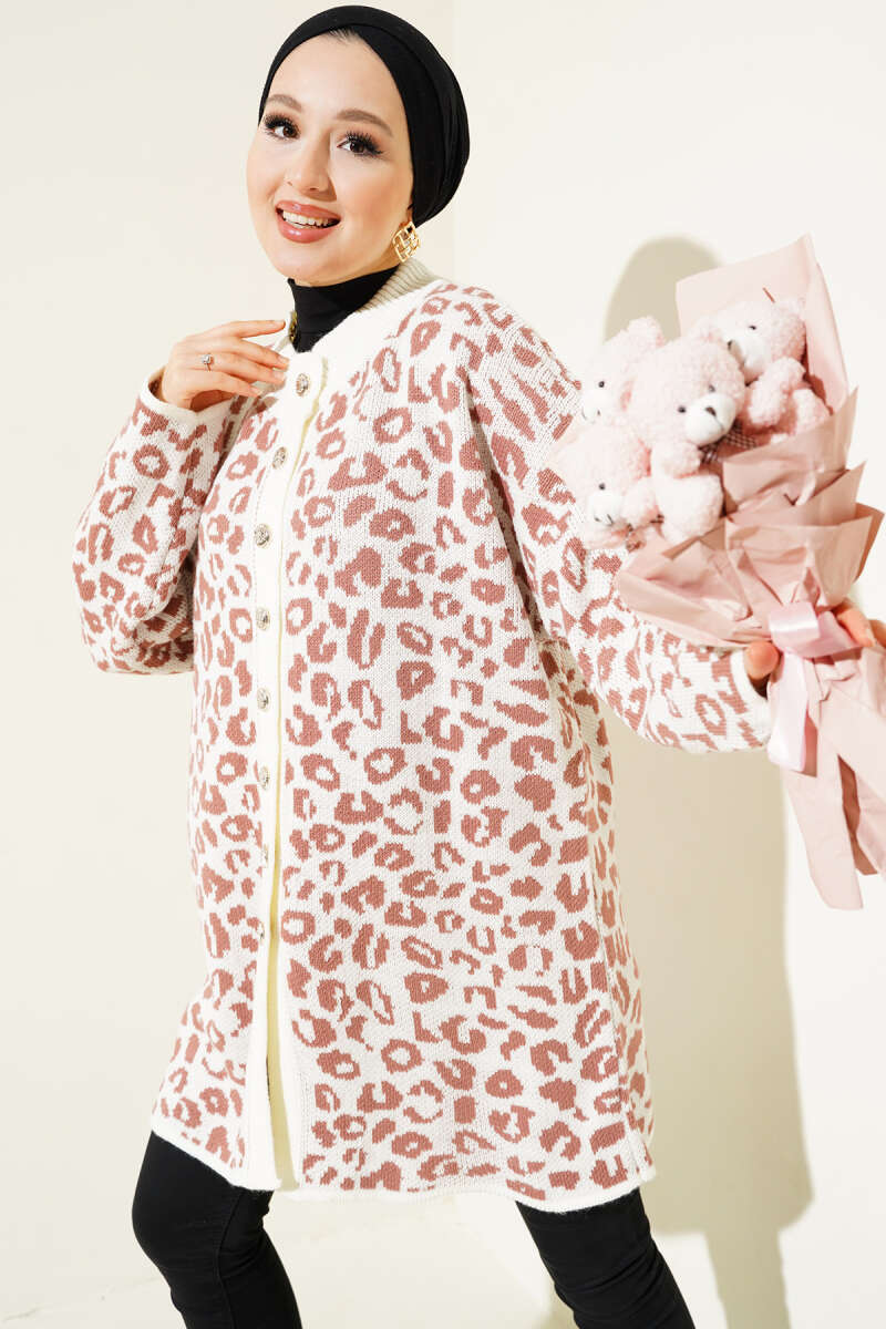 Gold Düğmeli Basic Sakallı Triko Hırka Kahve