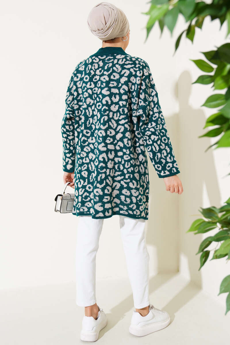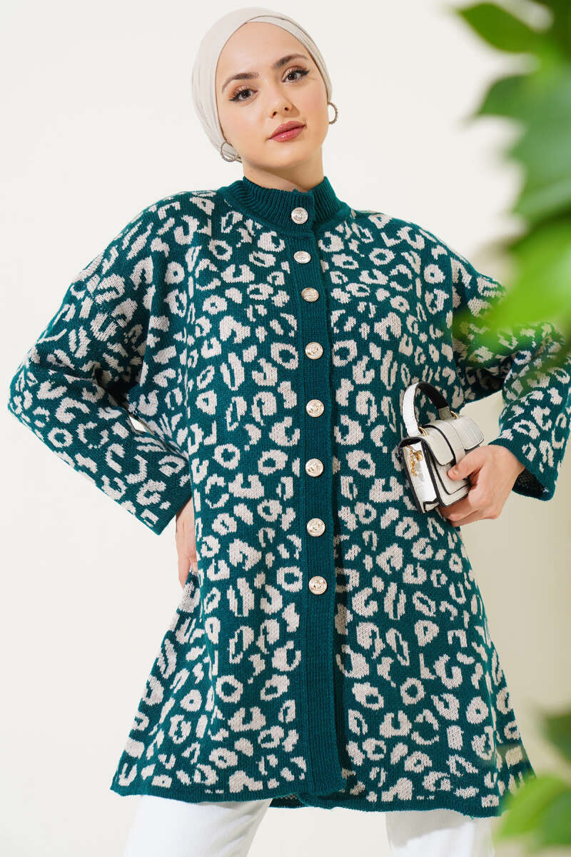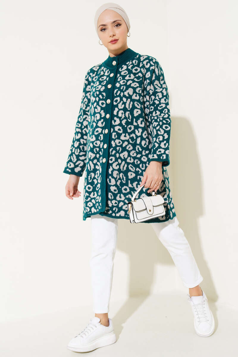 Düğmeli Uzun Merserize Hırka Zümrüt