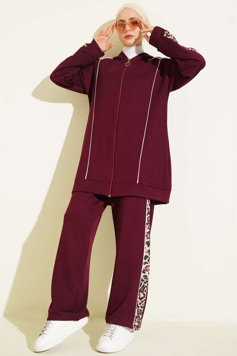 Leopar Desen Garnili Kapüşonlu İkili Takım Kahve