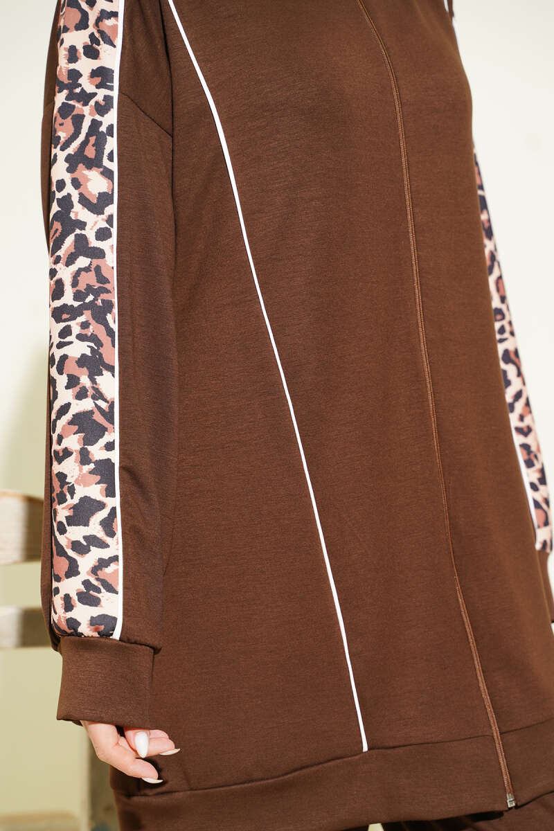 Leopar Desen Garnili Kapüşonlu İkili Takım Bordo