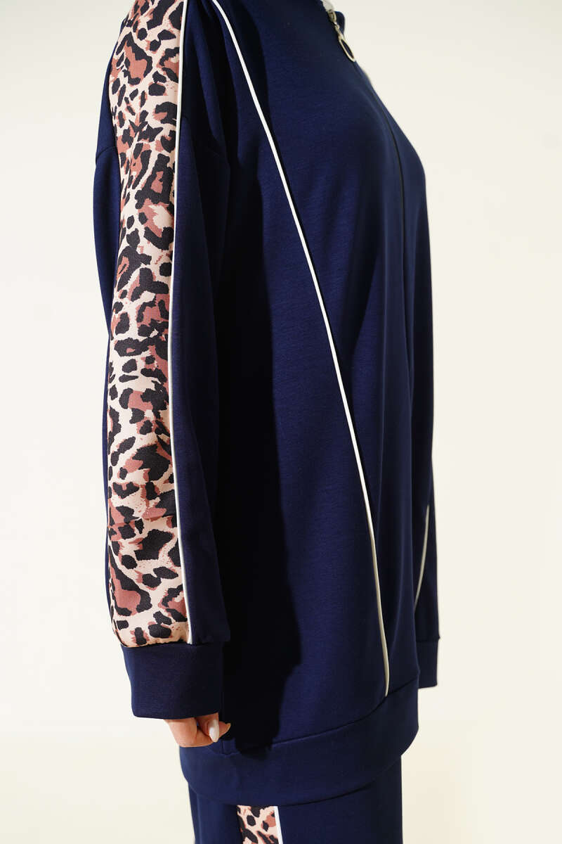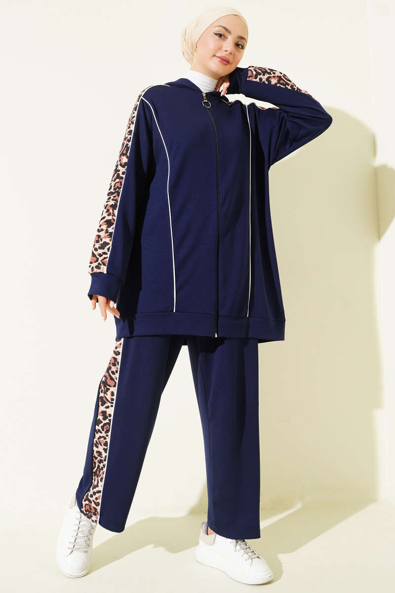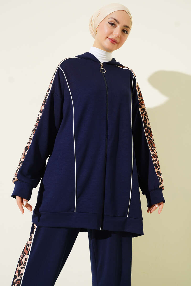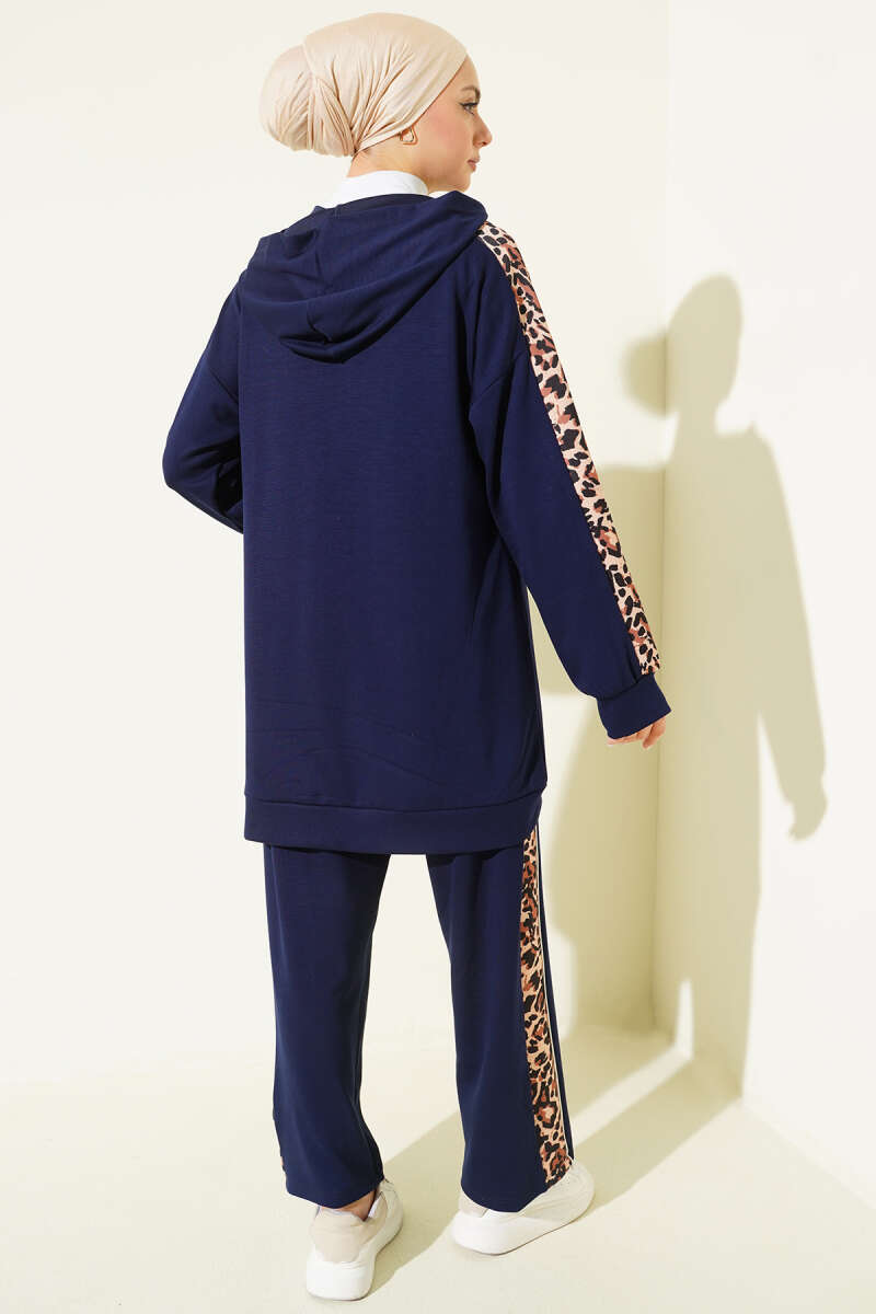 Leopar Desen Garnili Kapüşonlu İkili Takım Siyah