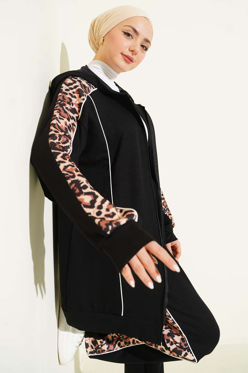 Leopar Desen Garnili Kapüşonlu İkili Takım Kahve