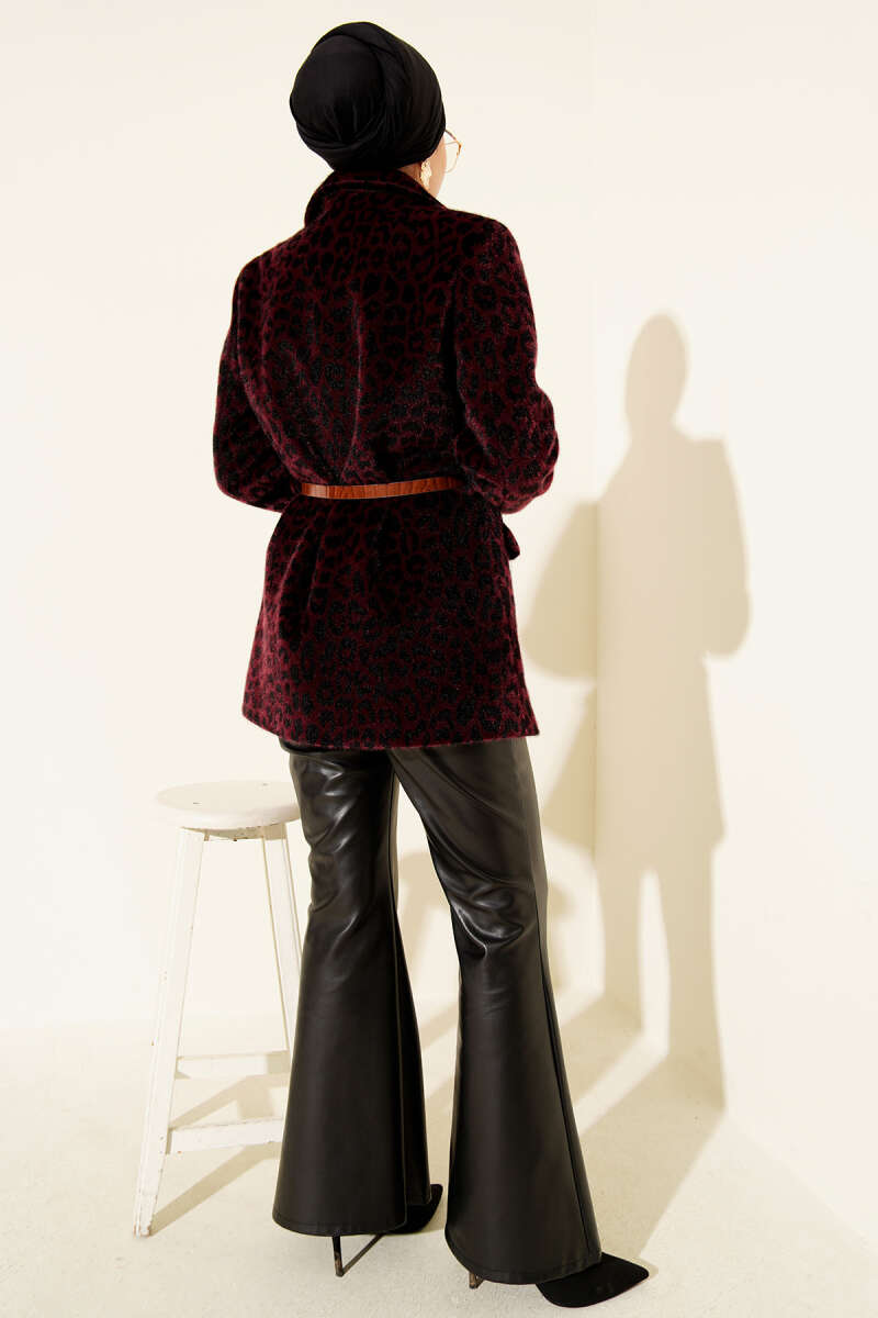 Kot Garnili Fermuarlı Peluş Ceket Kahve