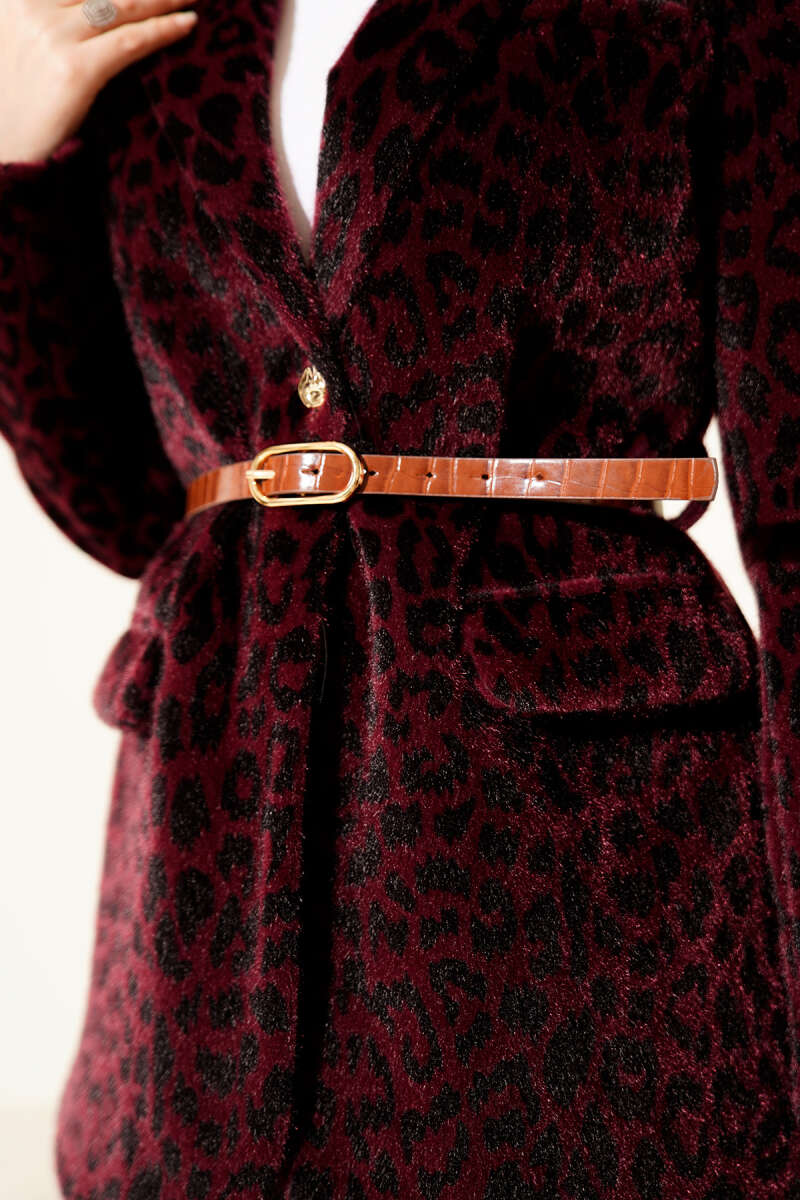 Oval Gold Düğmeli İp Kuşaklı Ceket Kahve