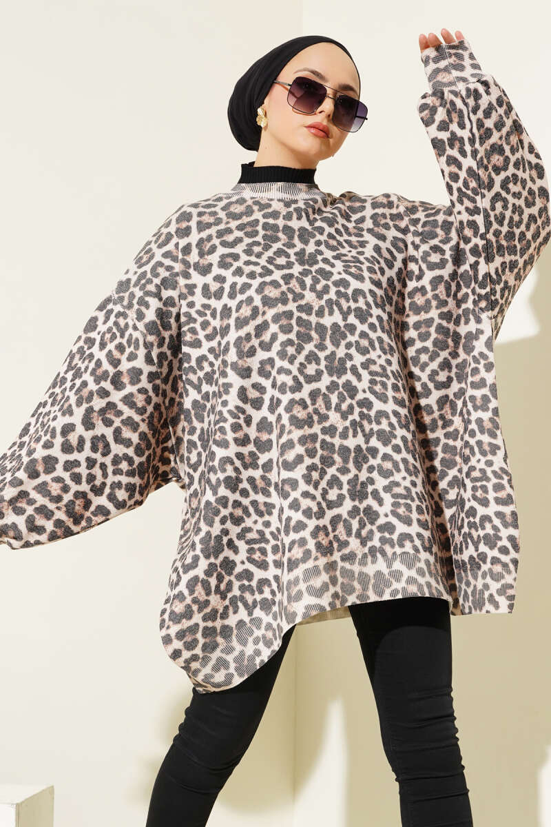 Salaş Bisiklet Yaka Simli Triko Tunik Vizon