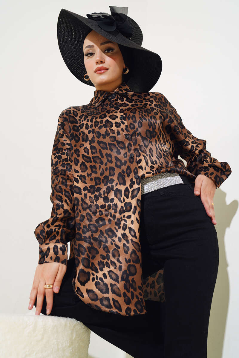 Yaka Bağlamalı Saten Gömlek Yeşil