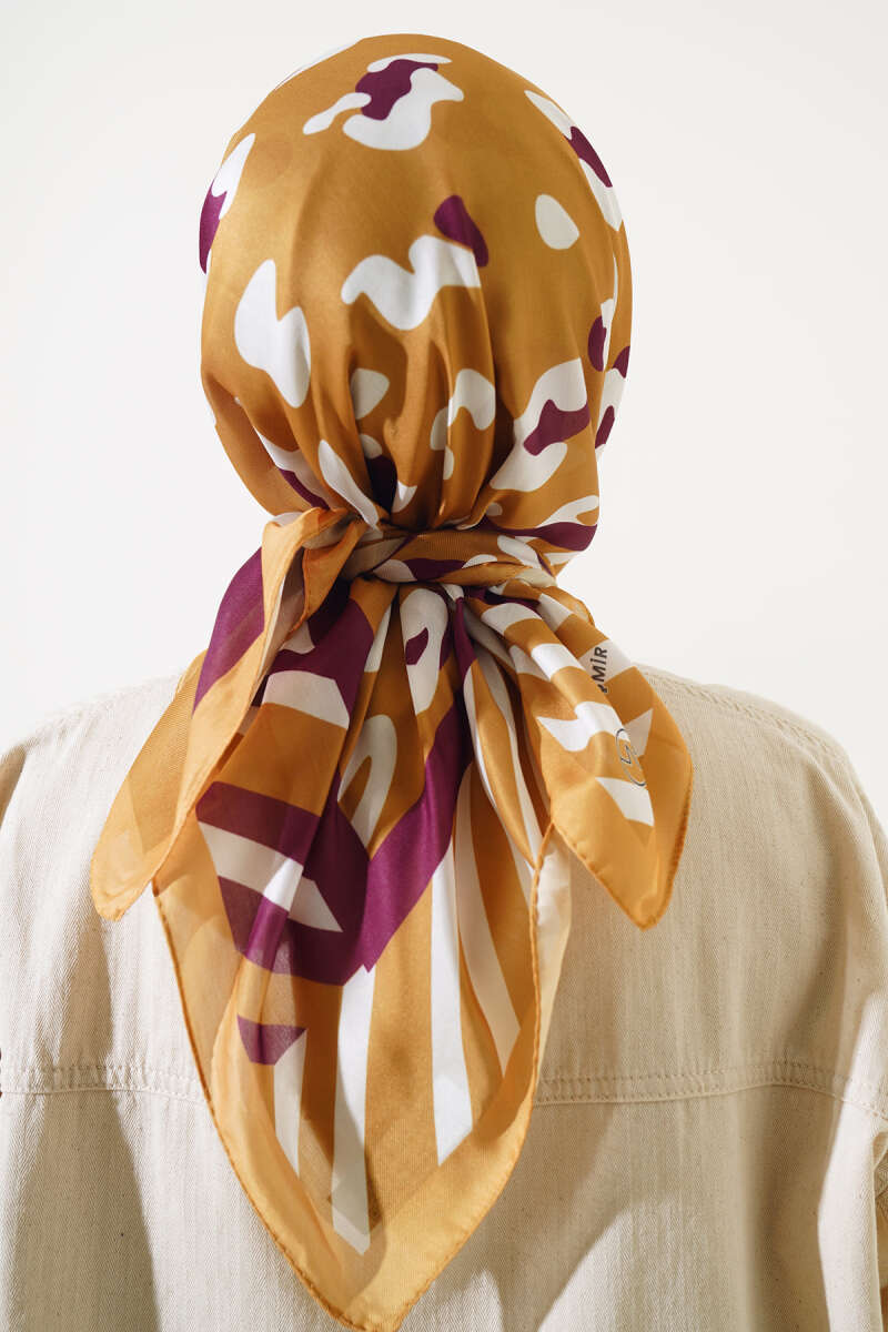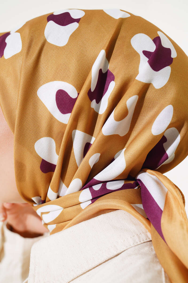 Leopar Desen Şeritli Soft Eşarp Yağ Yeşili