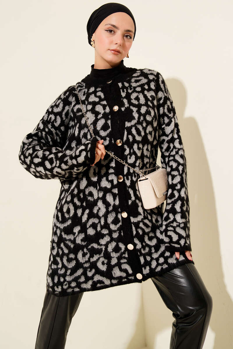 Nohut Desen Uzun Triko Hırka Siyah