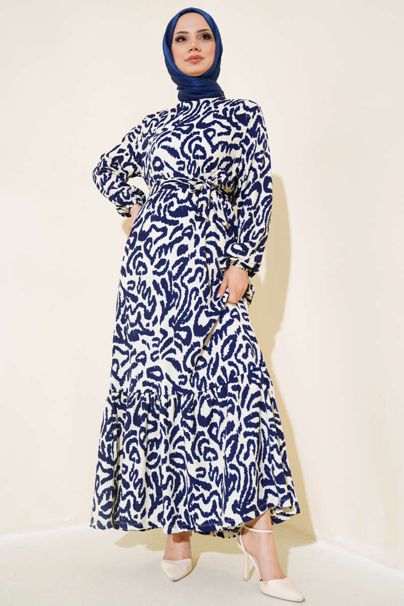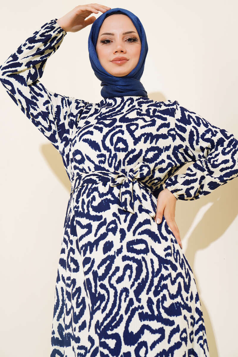 Yarım Yaka Fermuarlı Scuba Elbise Lacivert