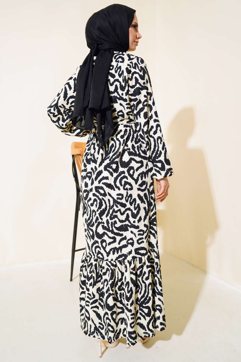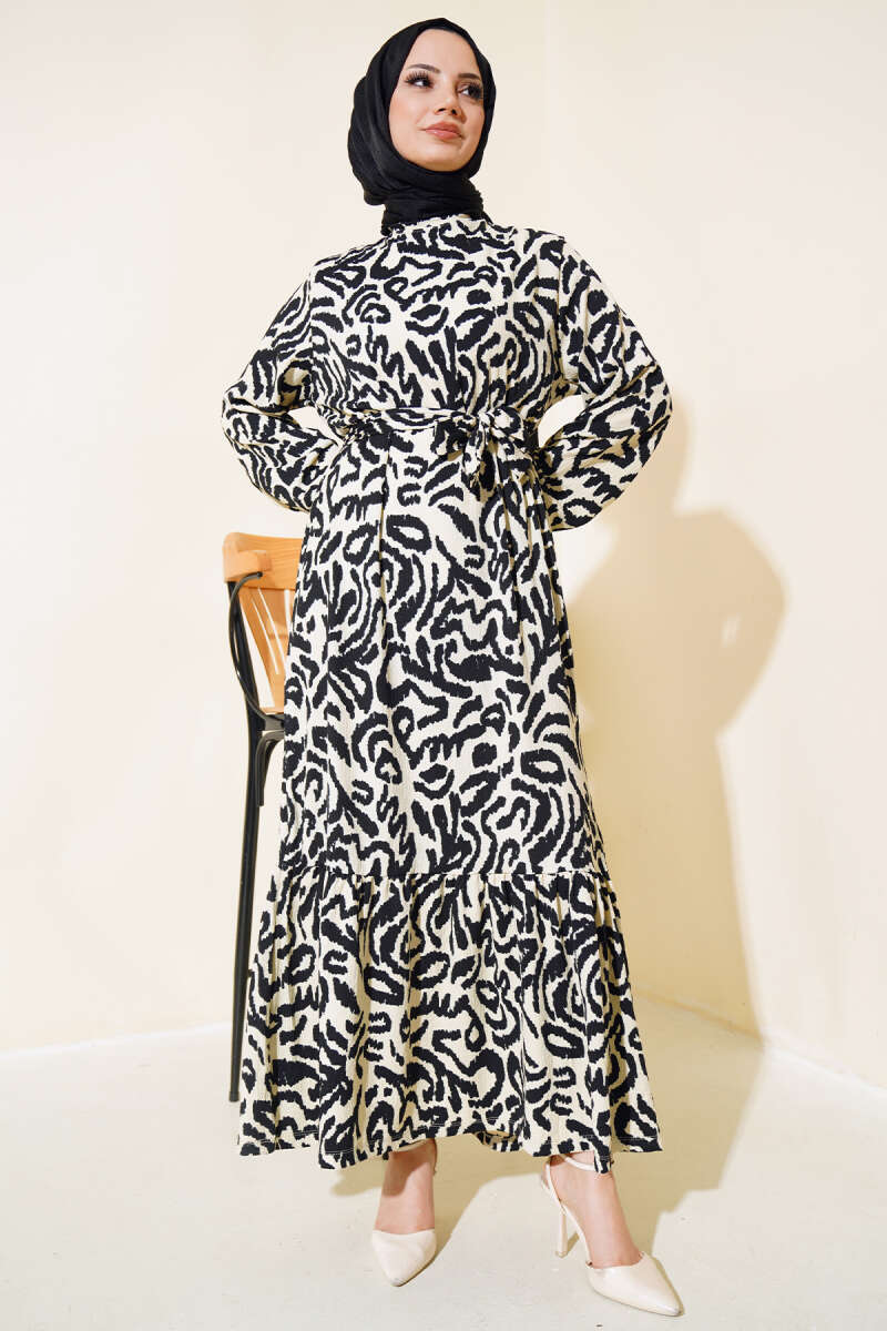 Ekose Desenli Kemerli Jile Elbise Kahve