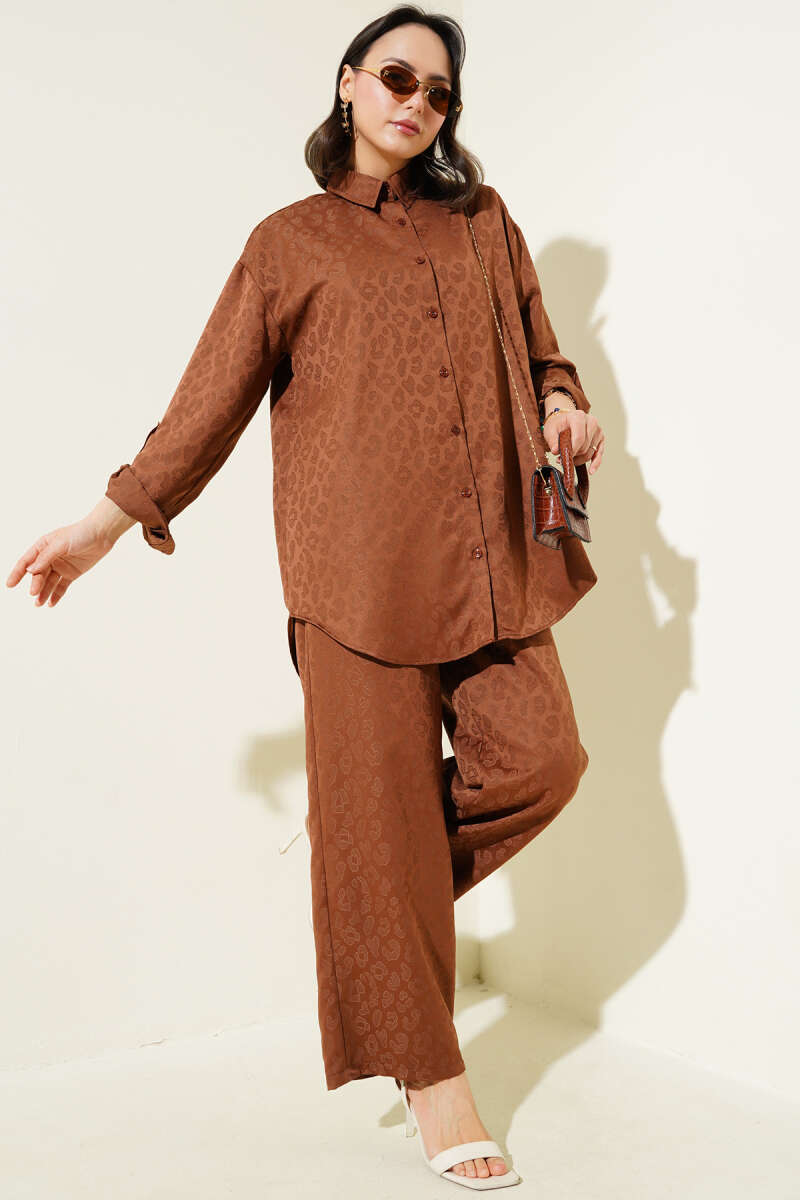 Leopar Desenli Jakar İkili Takım Kahve