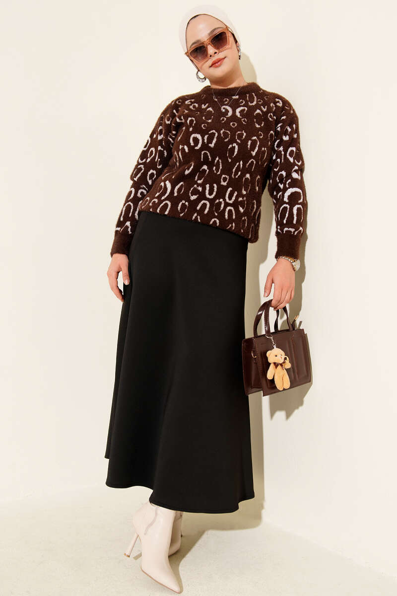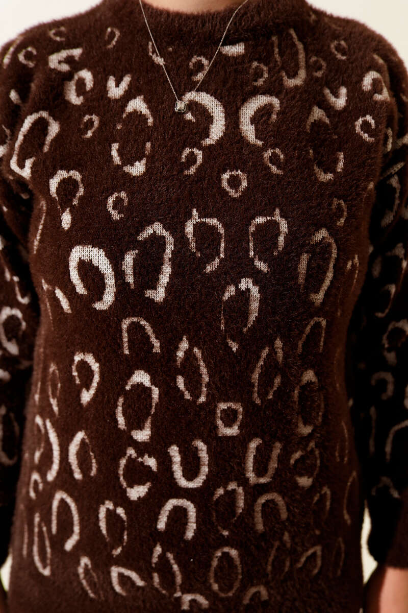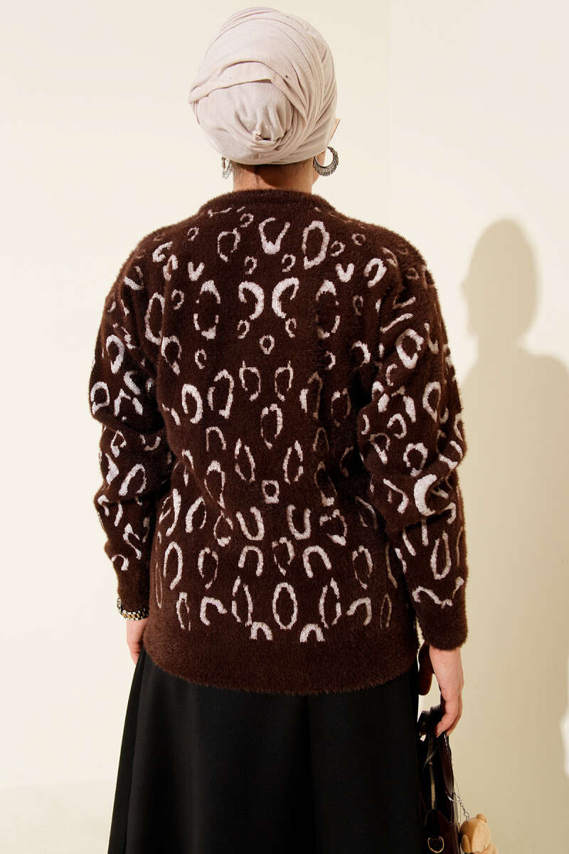 Zikzak Desen Ajurlu Triko Kazak Kahve