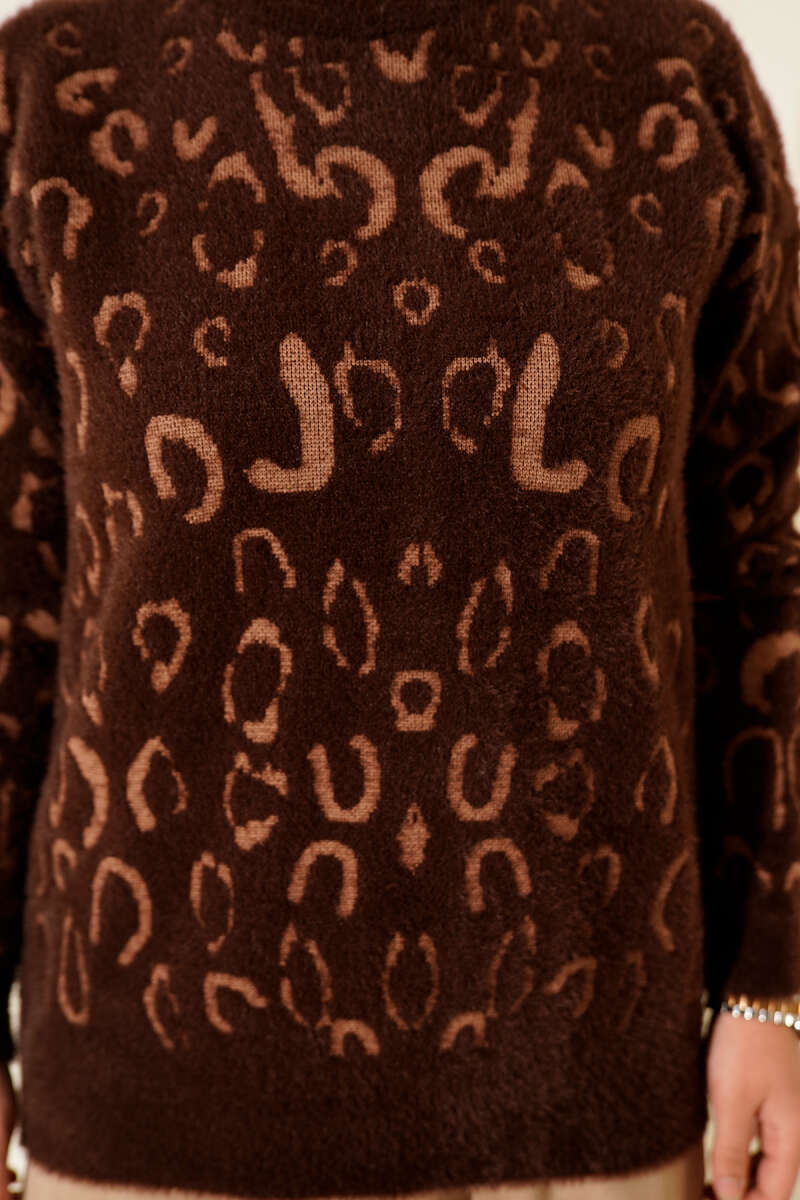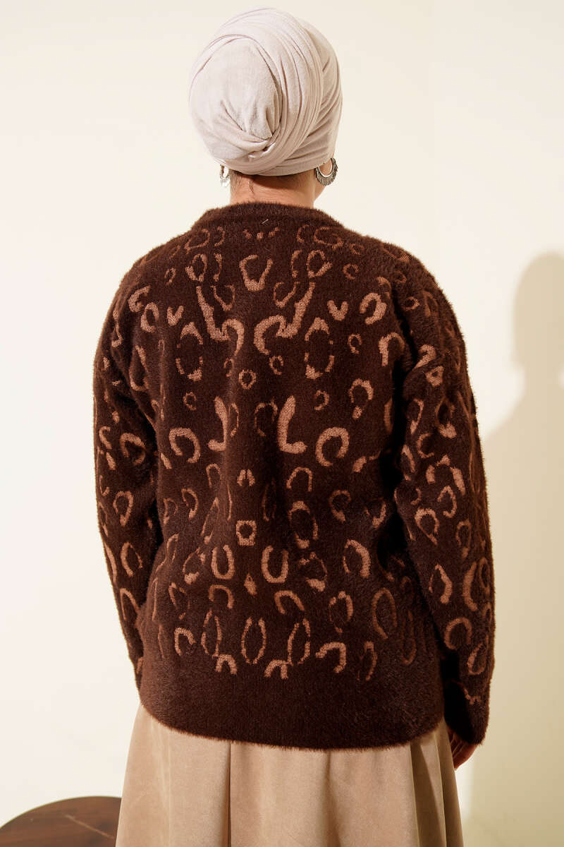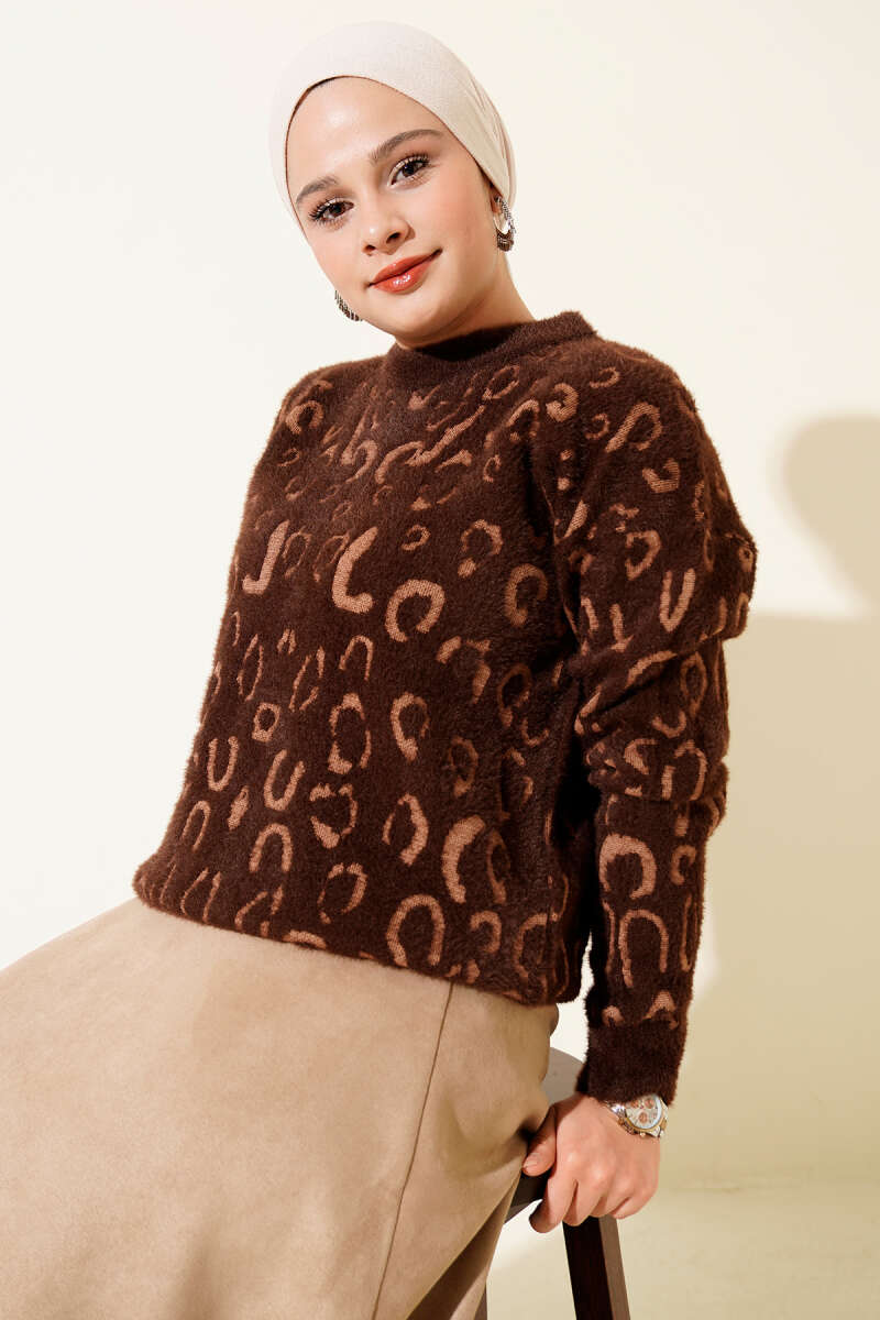 Zikzak Desen Ajurlu Triko Kazak Kahve