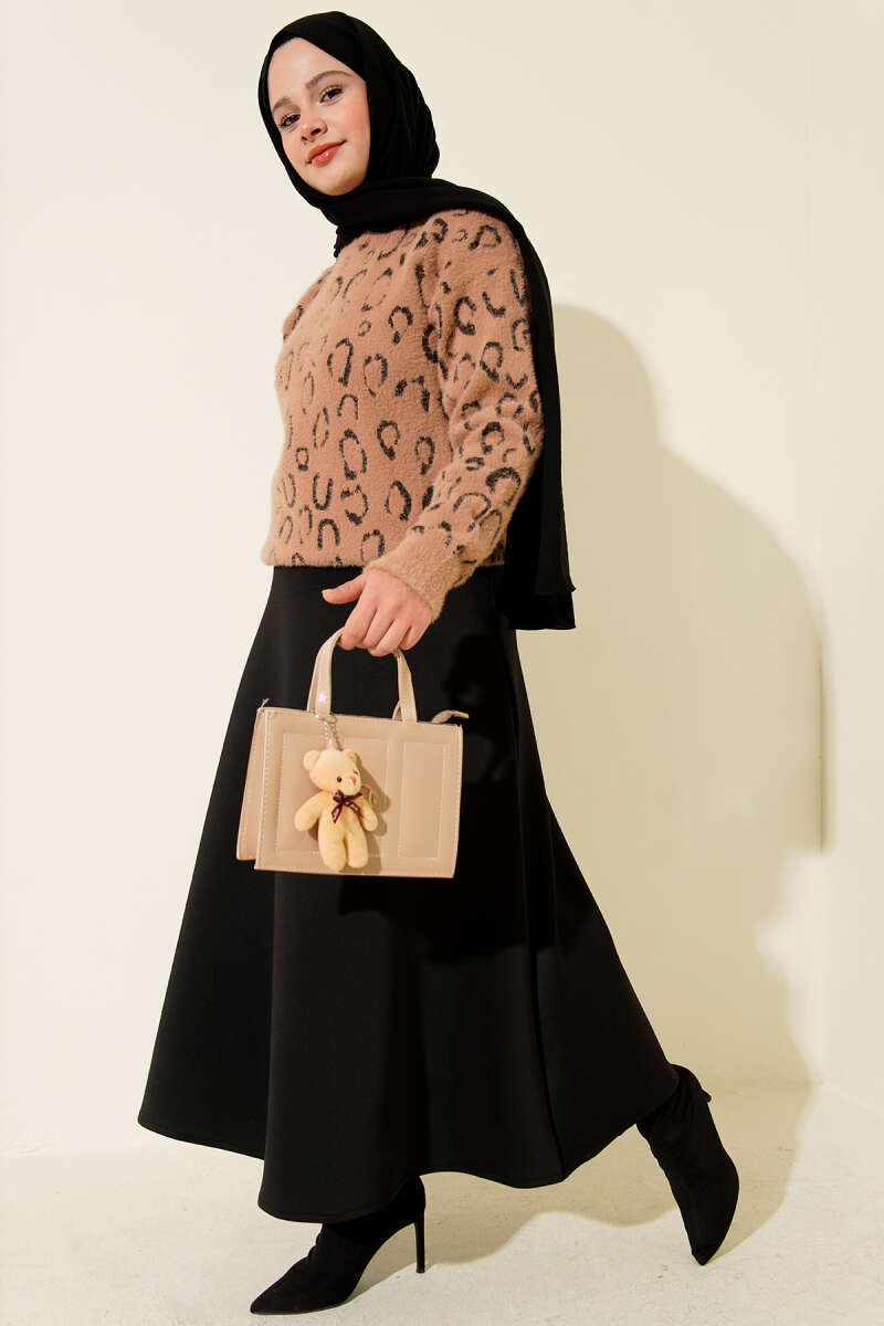 Leopar Desenli Sakallı Kazak Kahve Latte