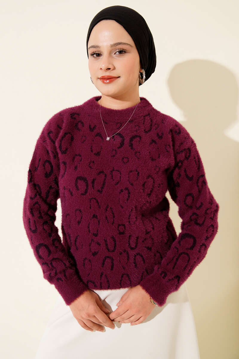 Leopar Desenli Sakallı Kazak Siyah Beyaz