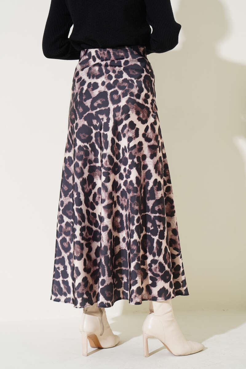 Kemerli Ekose Desen Kloş Etek Sütlü Kahve