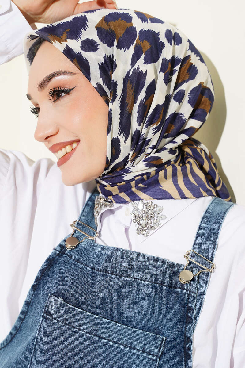 Leopar Desenli Soft Eşarp Petrol Mavisi