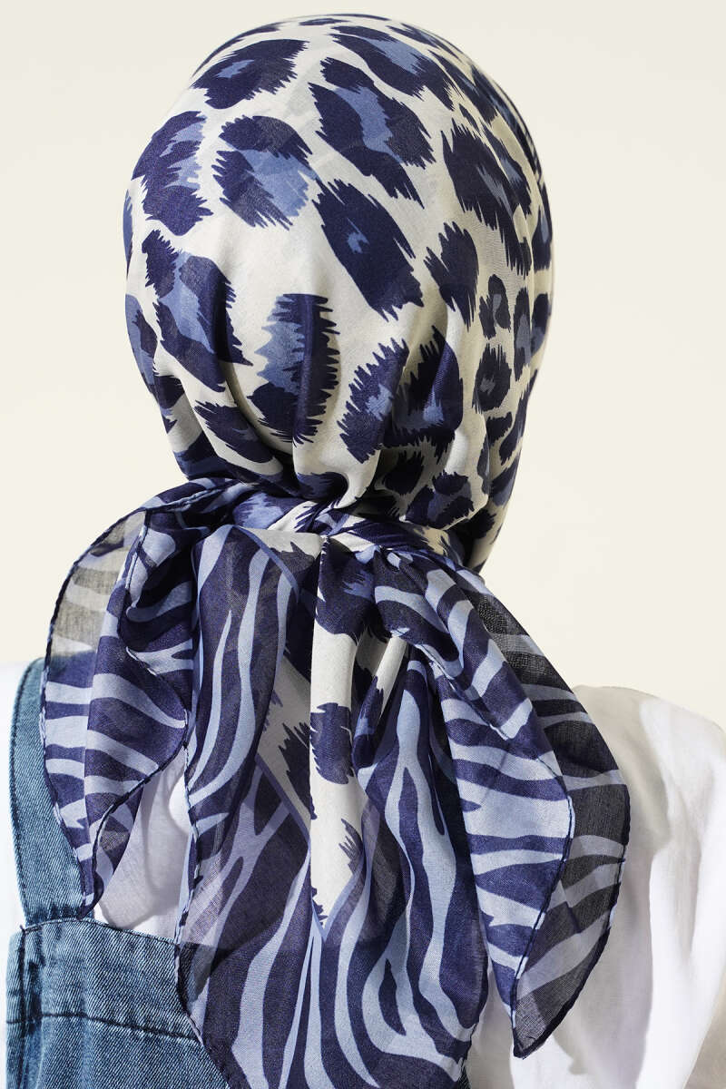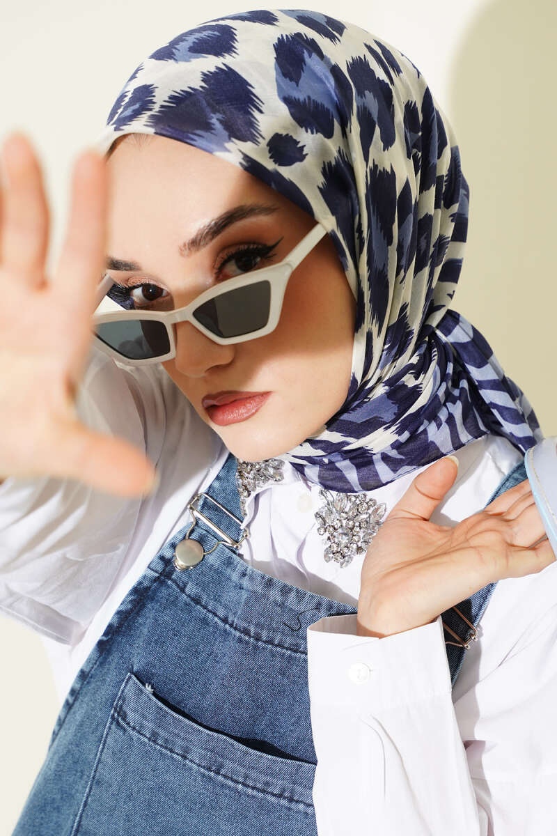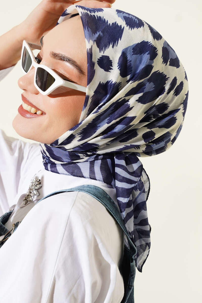 Leopar Desenli Soft Eşarp Lacivert