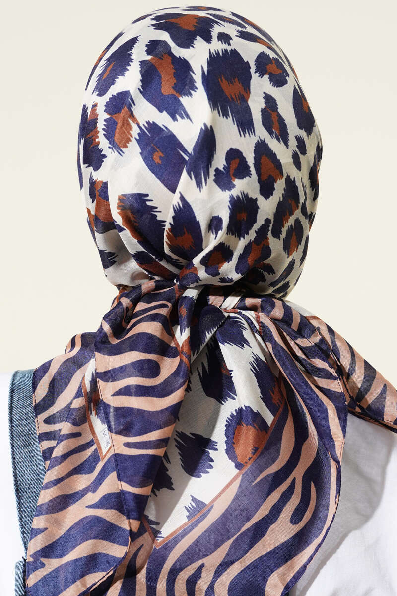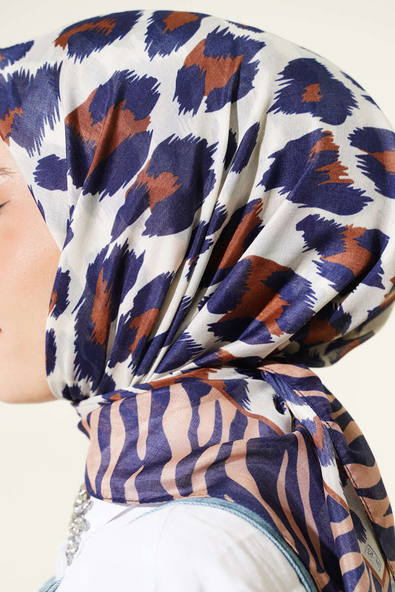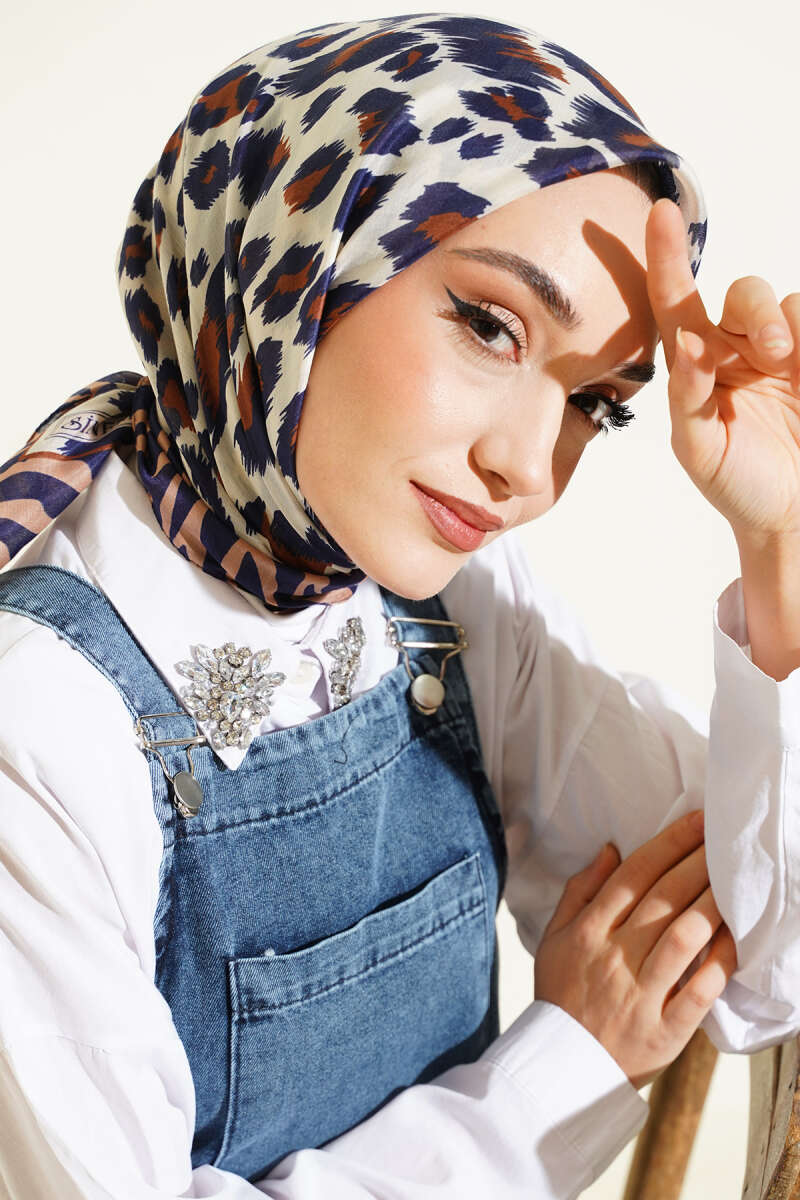 Leopar Desenli Soft Eşarp Petrol Mavisi