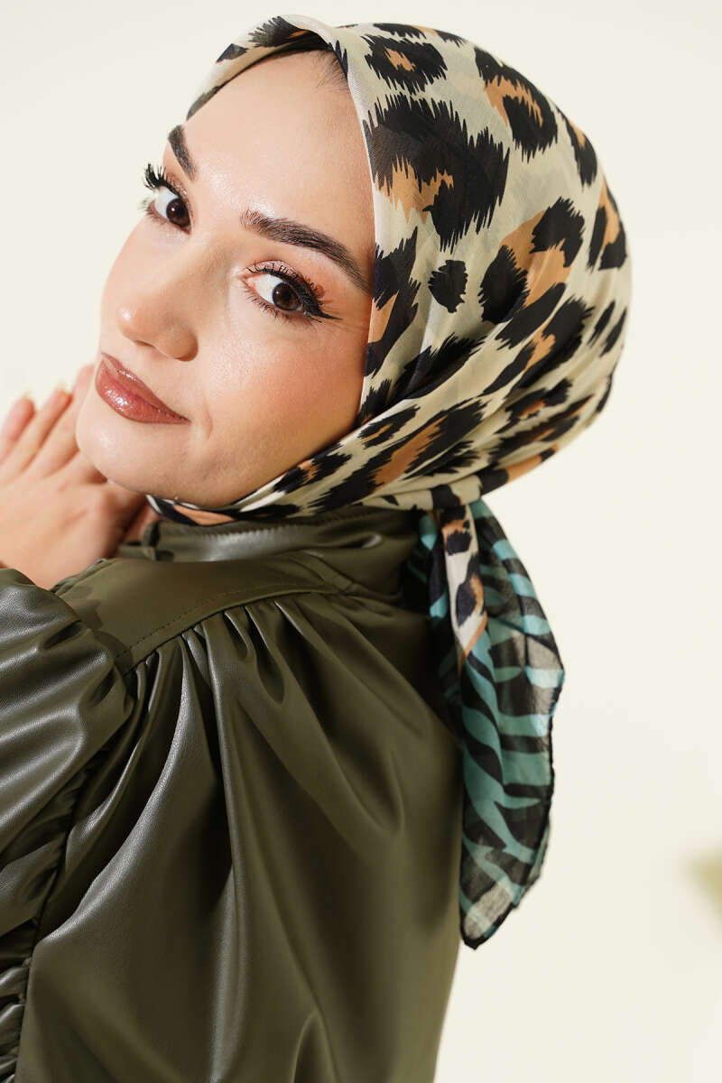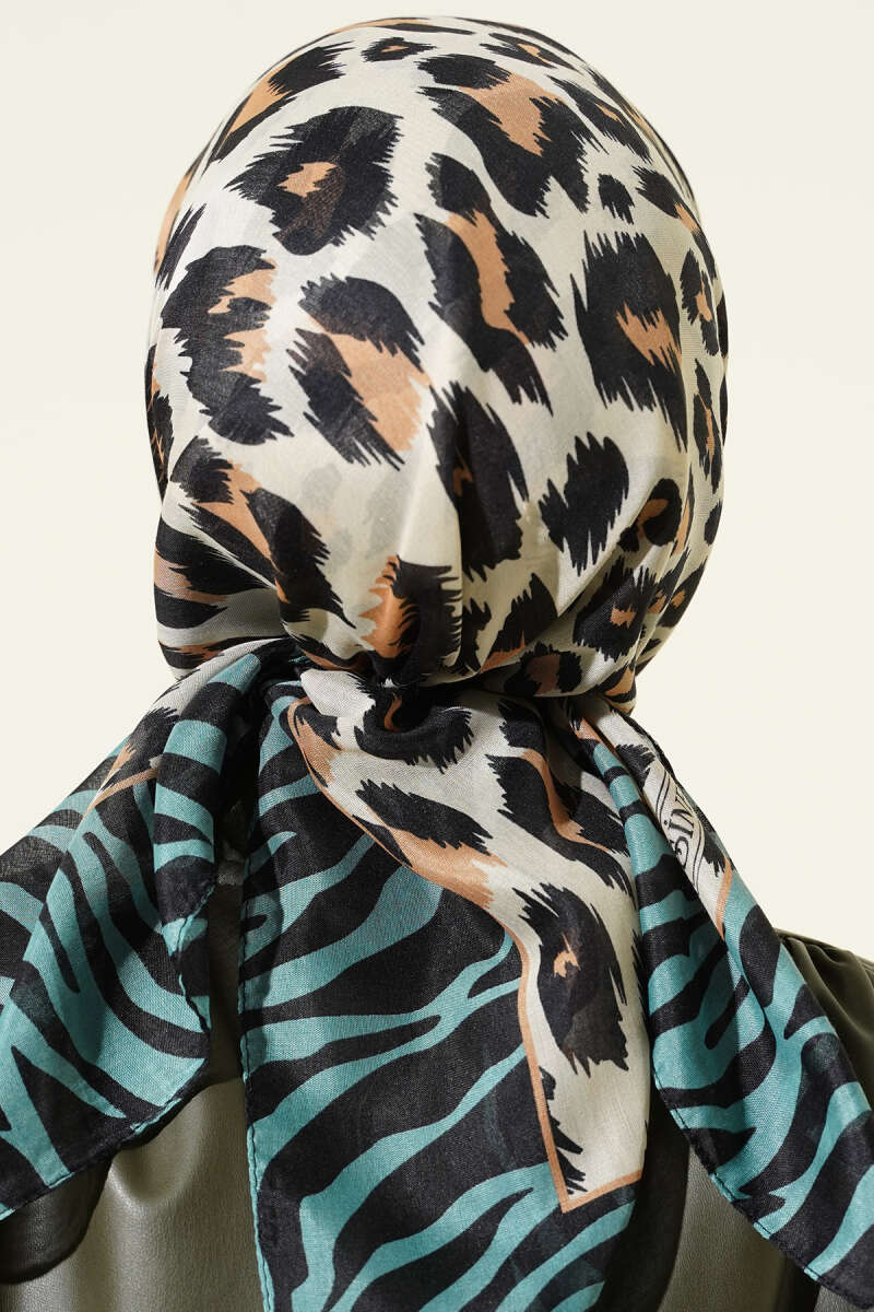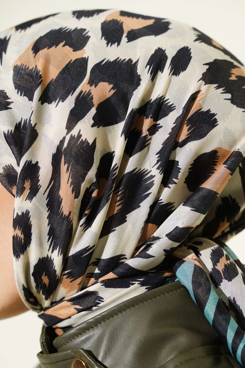 Leopar Desenli Soft Eşarp Petrol Mavisi