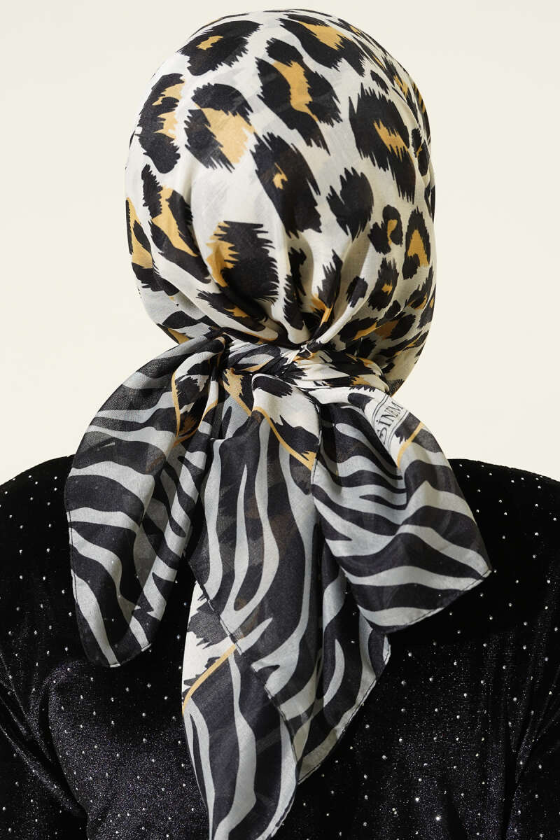 Karışık Motifli Desenli Eşarp Acı Kahve