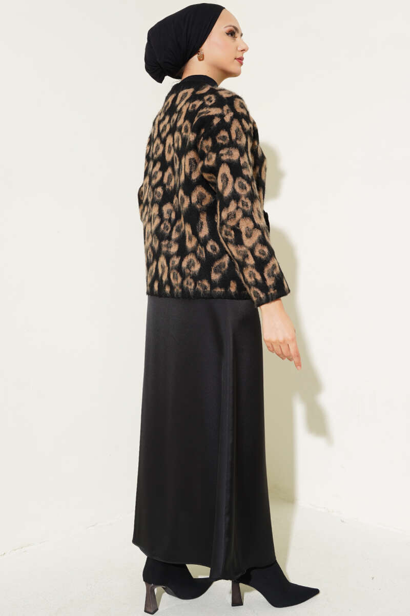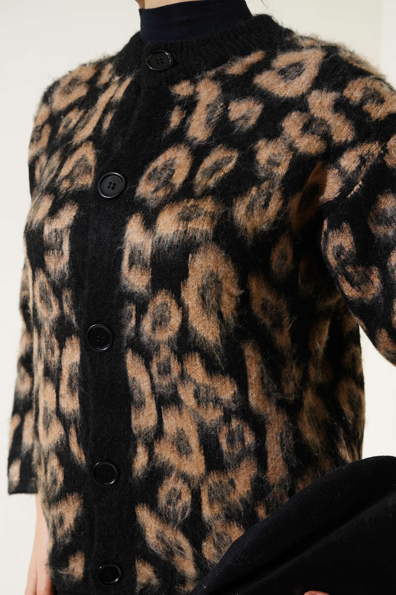 Leopar Desenli Triko Hırka Leopar Siyah Biyeli