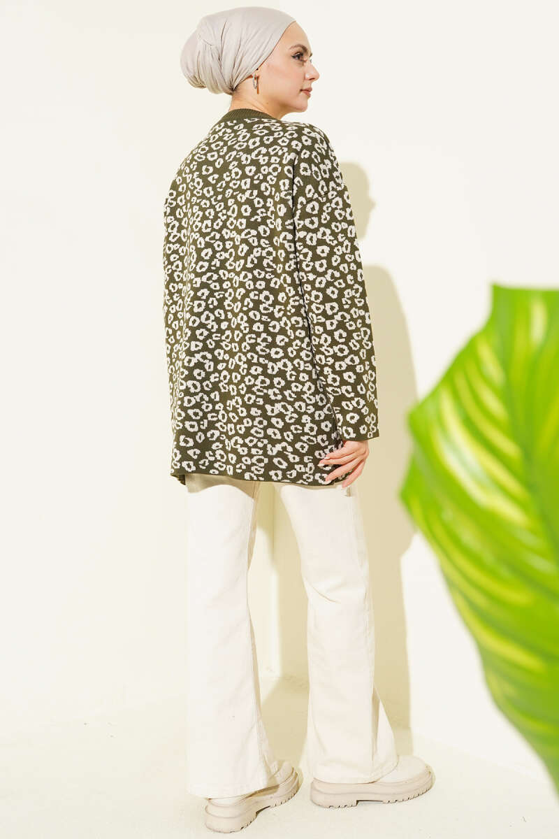 Yatay Kalın Çizgili Triko Tunik Yağ Yeşili