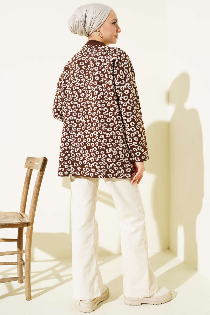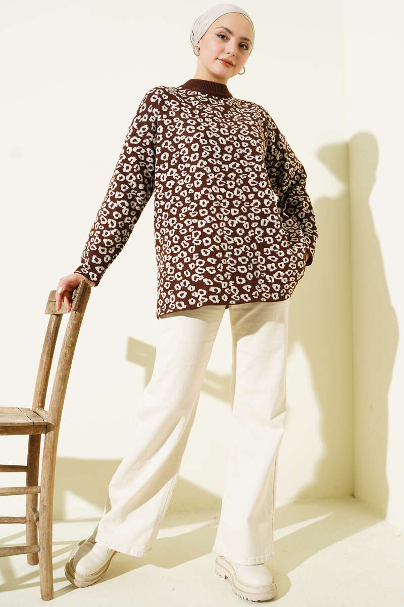 Leopar Desenli Triko Tunik Kahve