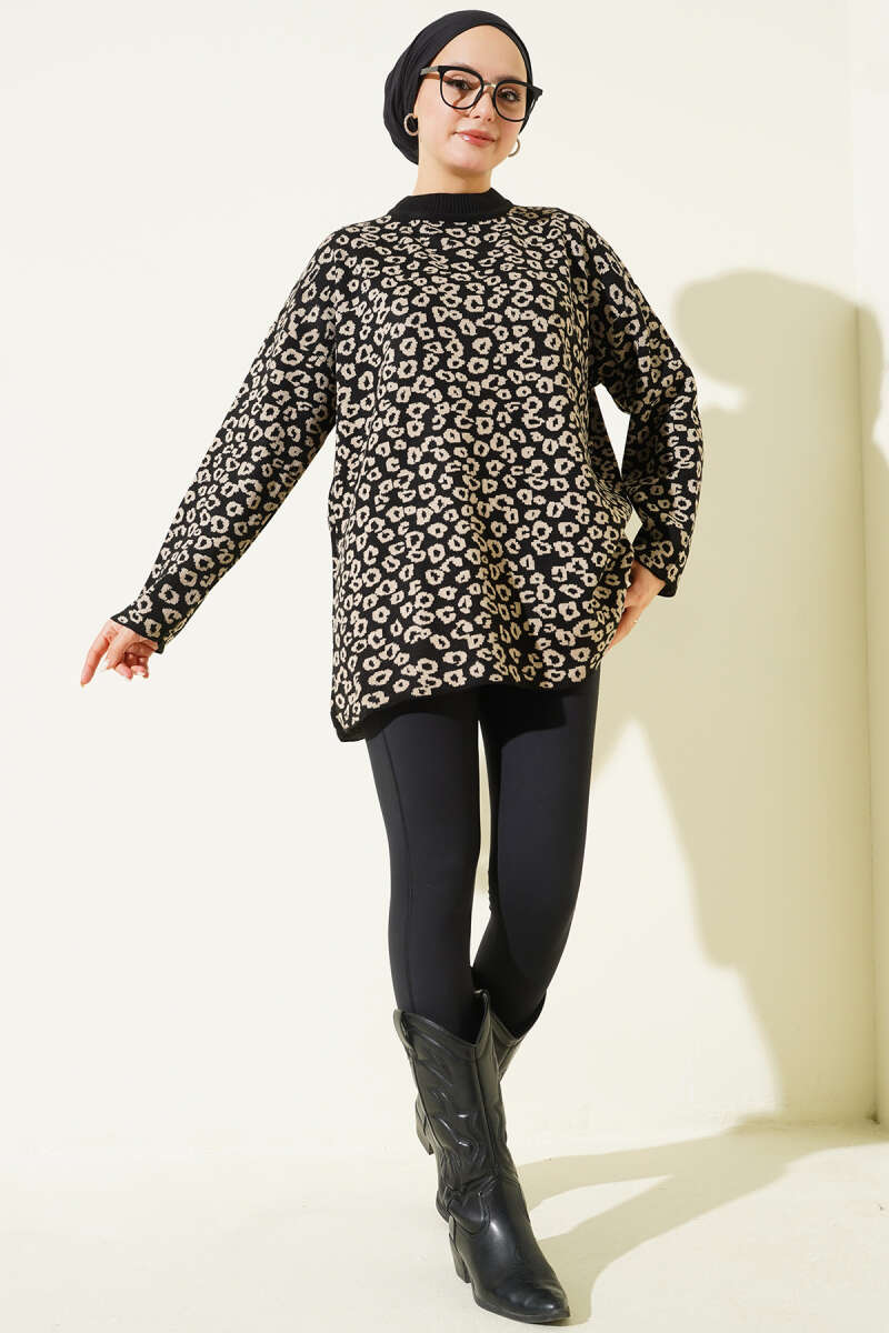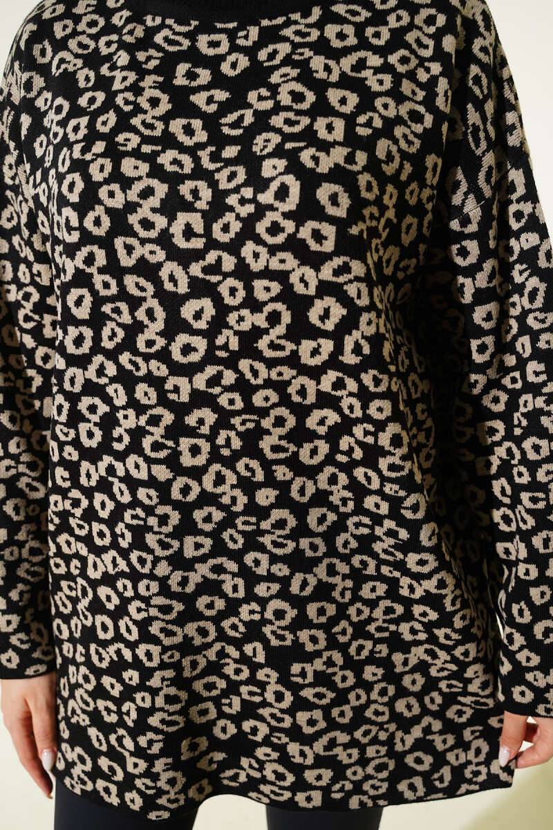 Leopar Desenli Triko Tunik Siyah