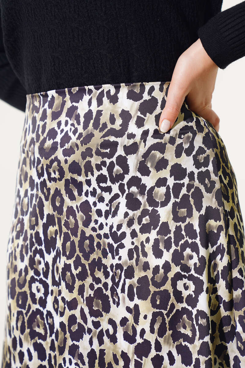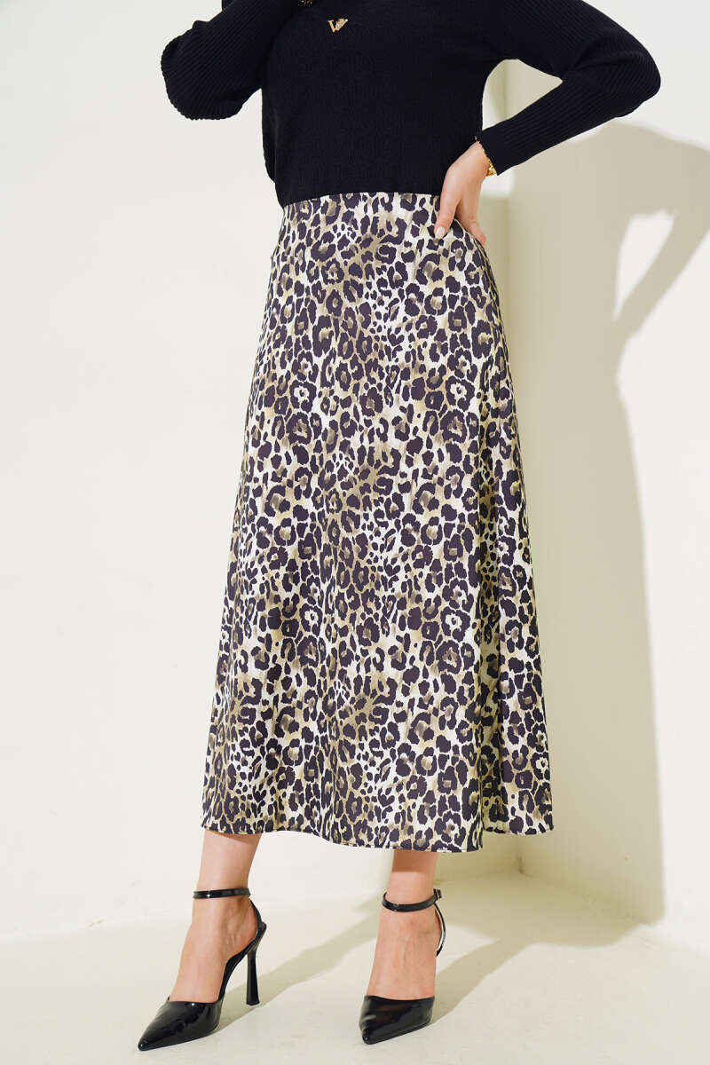 Çiçek Baskılı Güpürlü Etek Kahve