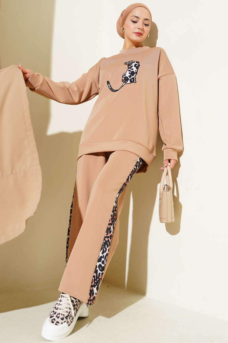 Pelerinli İp Bağcıklı İkili Takım Bej