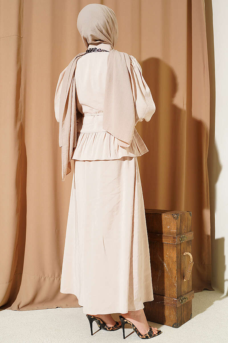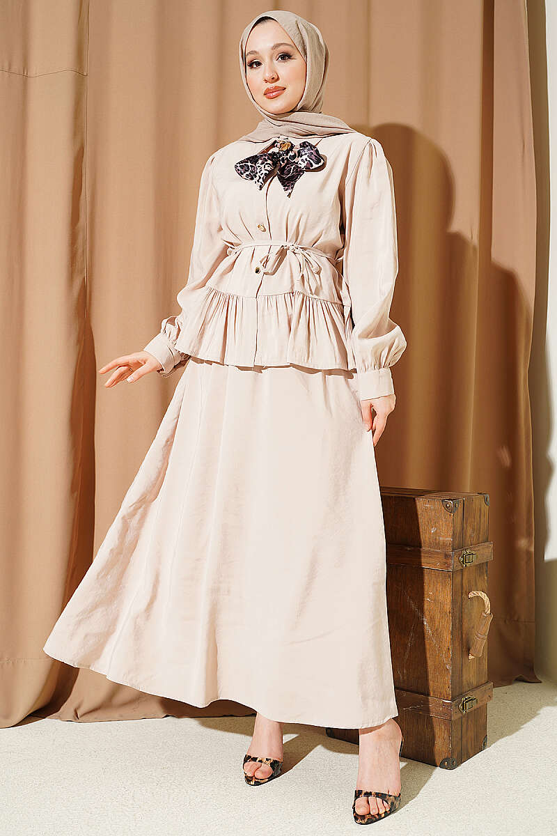 Yanları İp Detaylı İkili Takım Bej