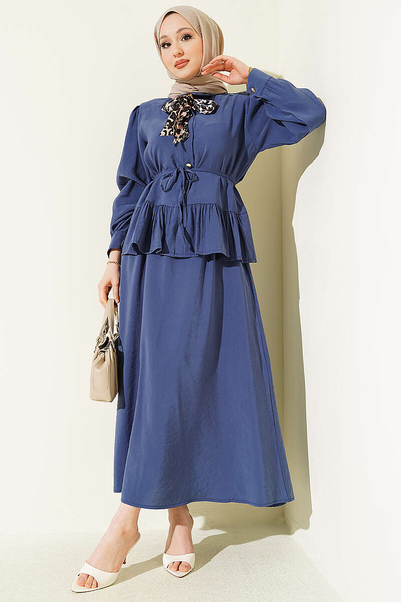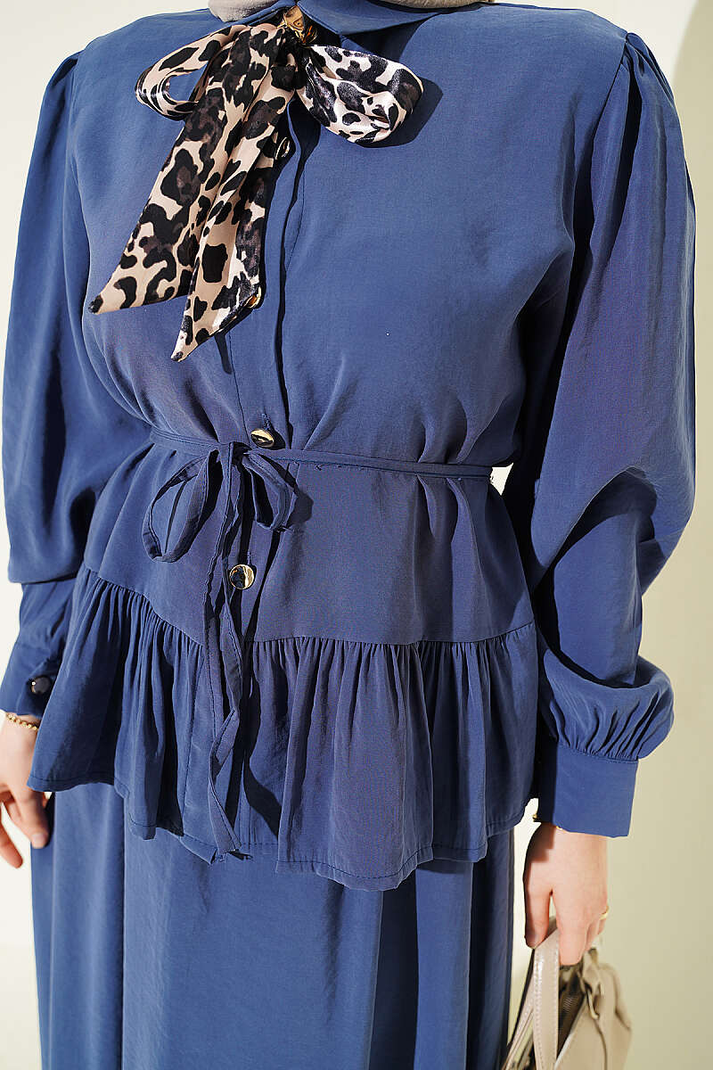 Leopar Fularlı Modal Etekli İkili Takım Lacivert
