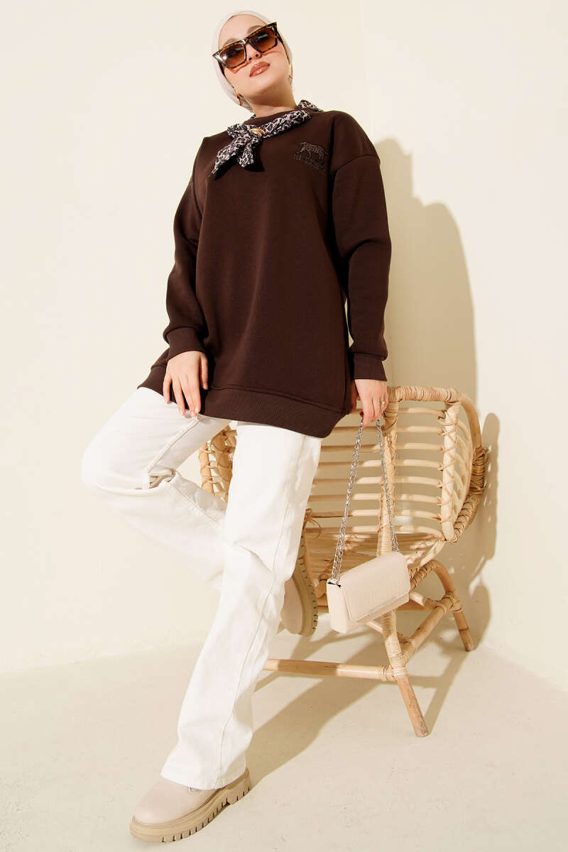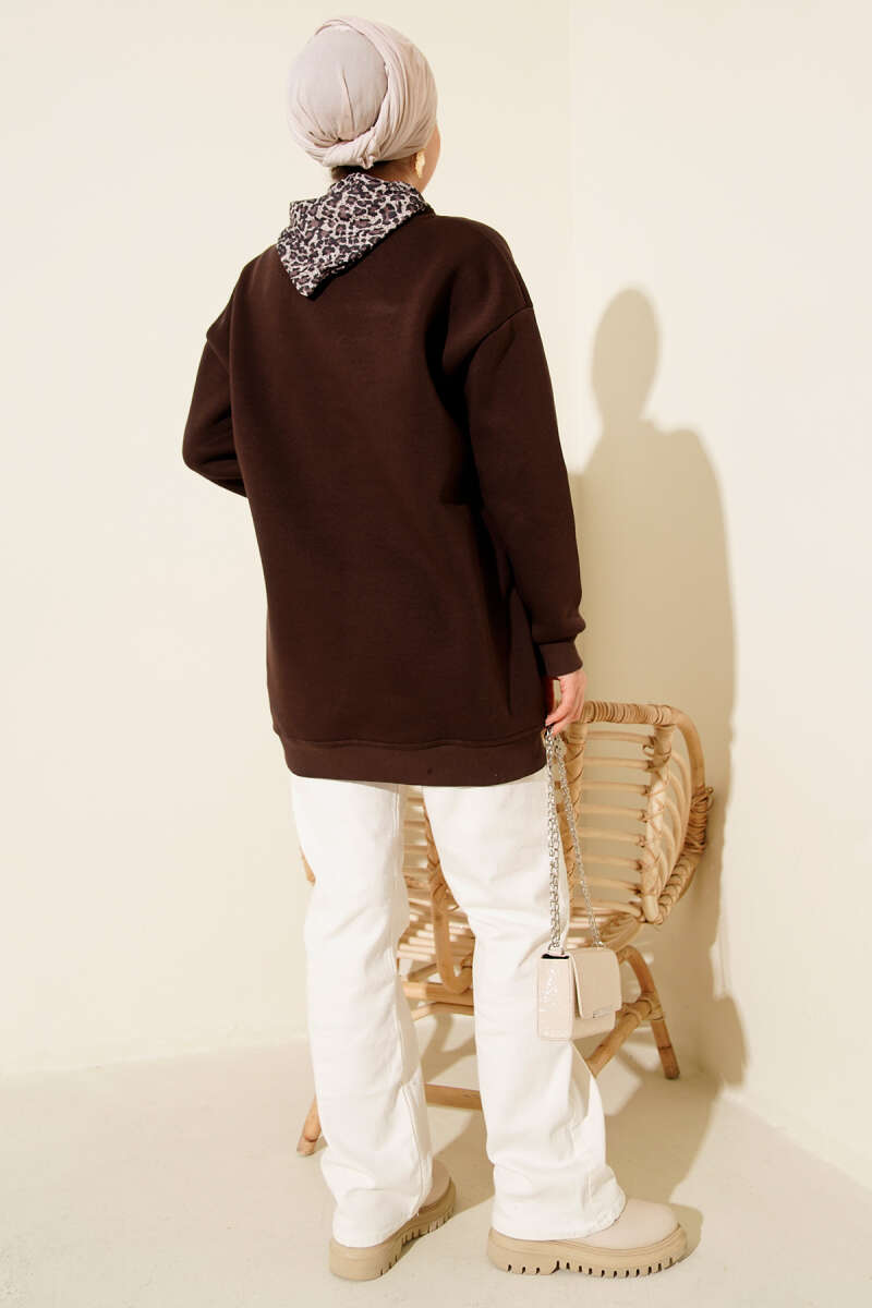 İp Bağlamalı Duble Kol Triko Tunik Kahve